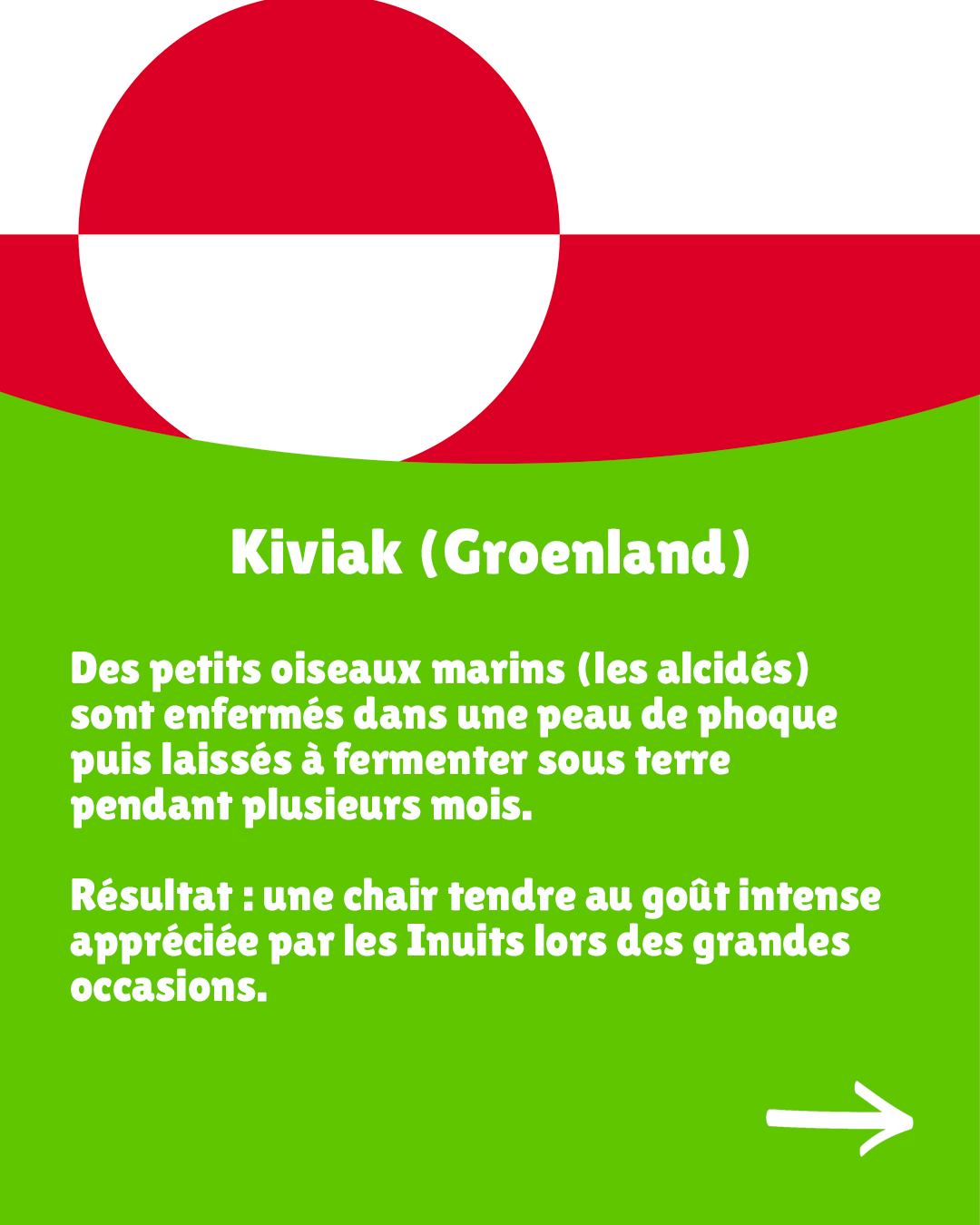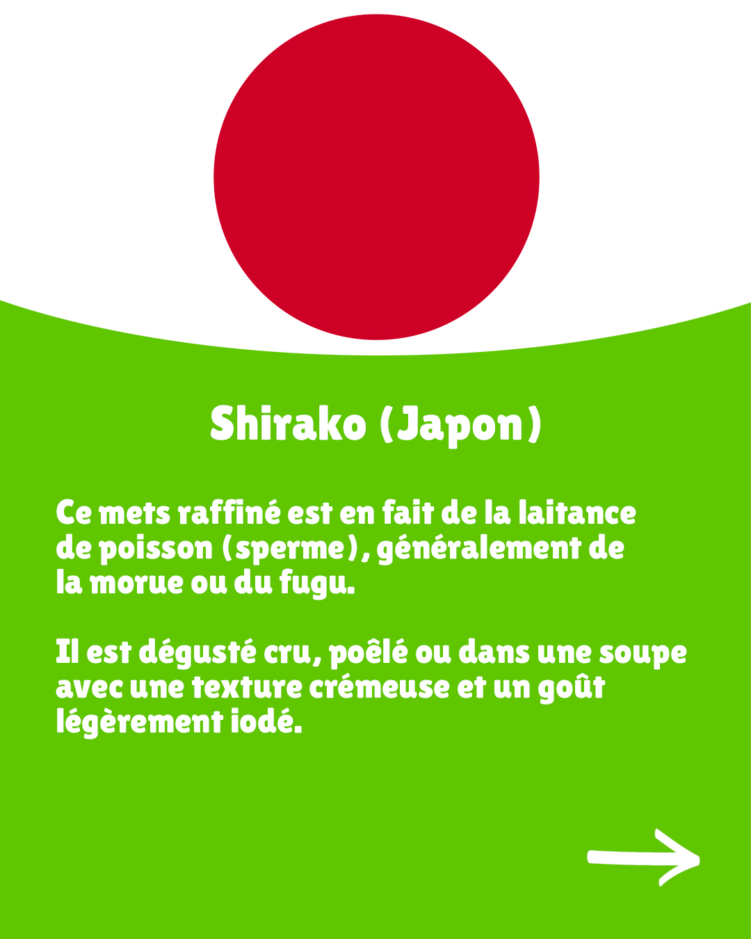 Fromage qui bouge, œuf pas comme les autres, viande peu conventionnelle… Tu découvriras dans ce carrousel des recettes étonnantes du monde entier !