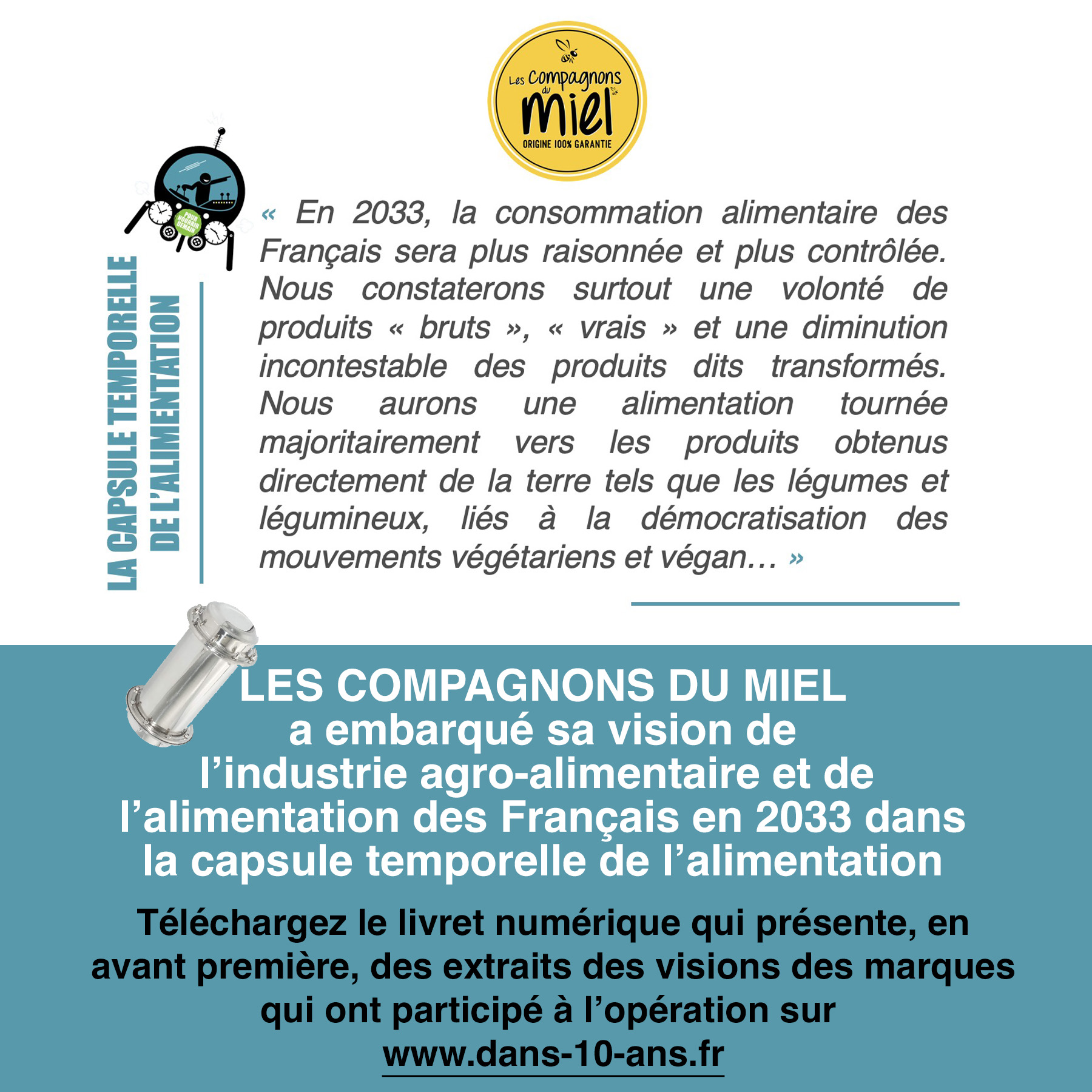 LES COMPAGNONS DU MIEL a embarqué sa vision de l’industrie agro-alimentaire et de l’alimentation des Français en 2033 dans la capsule temporelle de l’alimentation.