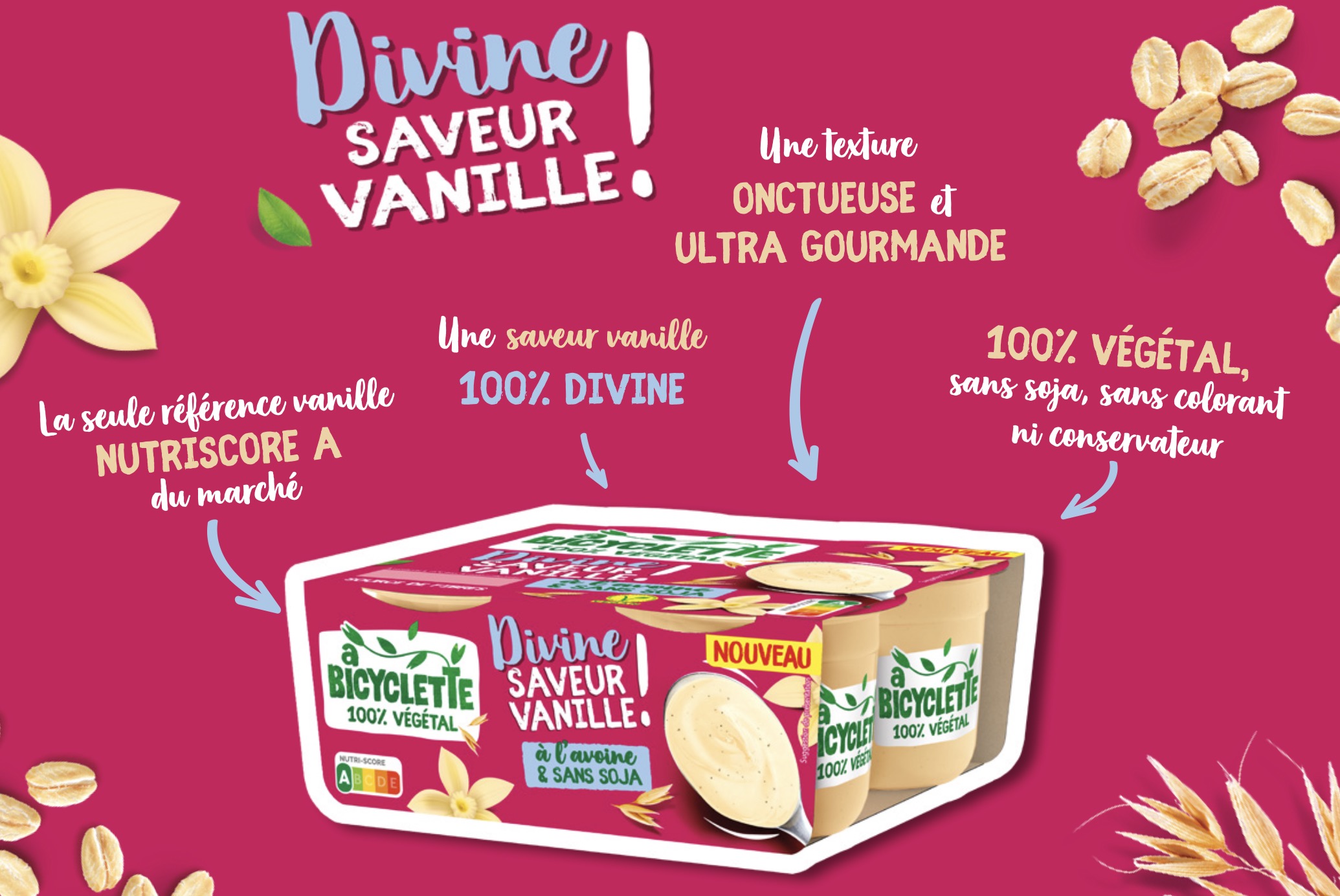 En avril 2023, la marque de desserts végétaux à l’avoine À Bicyclette dévoile son innovation saveur vanille pour faire plaisir à tous les amateurs de gourmandise !