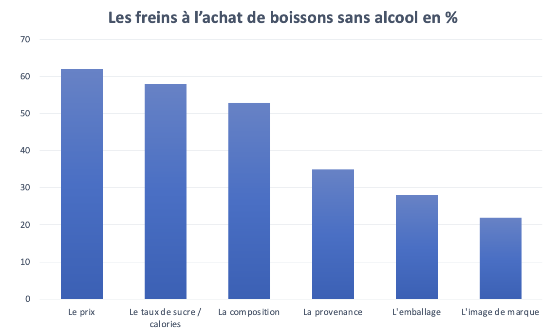 Le prix est le facteur qui pèse le plus sur l’acte d’achat d’une boisson autre que de l’eau plate et sans alcool : il peut être rédhibitoire pour les deux tiers des Français (62%). Les arguments nutritionnels et qualitatifs sont intégrés dans des proportions trés similaires : une forte teneur calorique et des composants artificiels (additifs ou édulcorants) ont le potentiel de détourner une large moitié des Français de l’achat d’une boisson (respectivement 58% et 53%).
