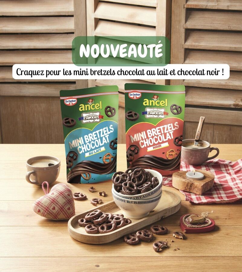 Le contraste fonctionne entre le croquant salé typique du bretzel signé ancel et la douceur sucrée du chocolat Fortwenger, habituellement connu pour ses pains d’épices.