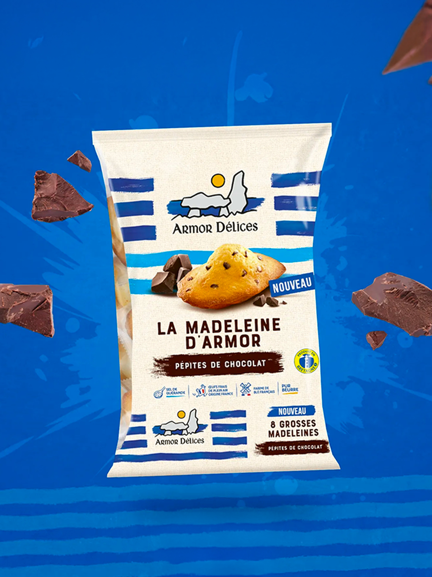 Armor Délices étoffe sa gamme avec une madeleine pur beurre enrichie de pépites de chocolat, toujours confectionnée dans le respect des traditions bretonnes.