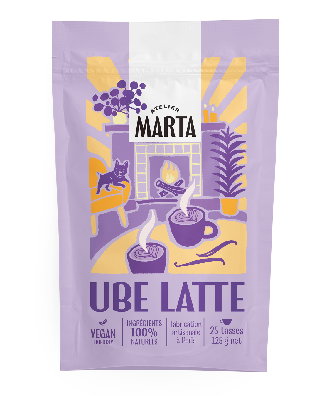 Déjà repéré dans plusieurs coffee-shops parisiens, l’Ube Latte rejoint les recettes signatures d’Atelier Marta, Matcha, Chaï, Golden, Pink ou Char Coco, appréciées pour leur aspect coloré et leur profil végétal.