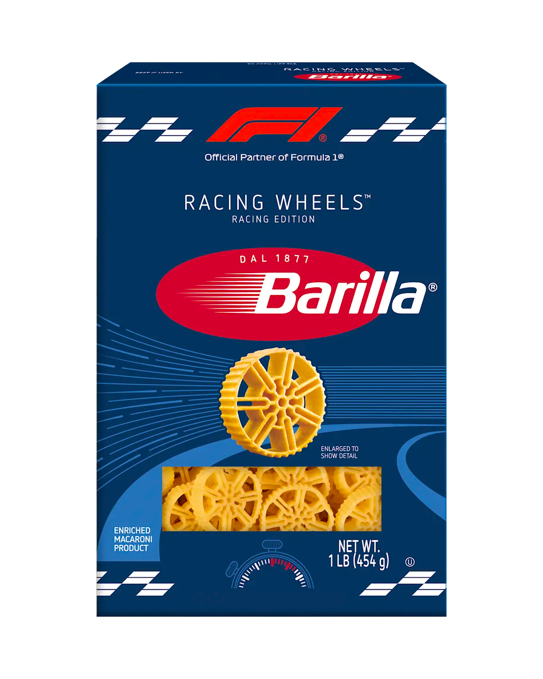 Barilla s’inspire de l’univers de la Formule 1 pour revisiter la pasta du dimanche italien. Avec sa forme de roue de voiture de course, Racing Wheels transforme l’assiette en clin d’œil ludique à la vitesse et à la convivialité.