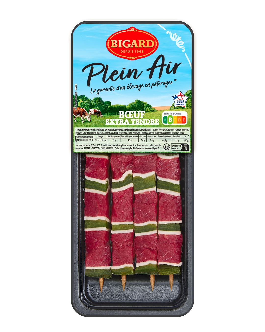 Les brochettes, elles, sont composées de viande fraîche, de poivrons et de lard naturel, prêtes à faire crépiter les barbecues.