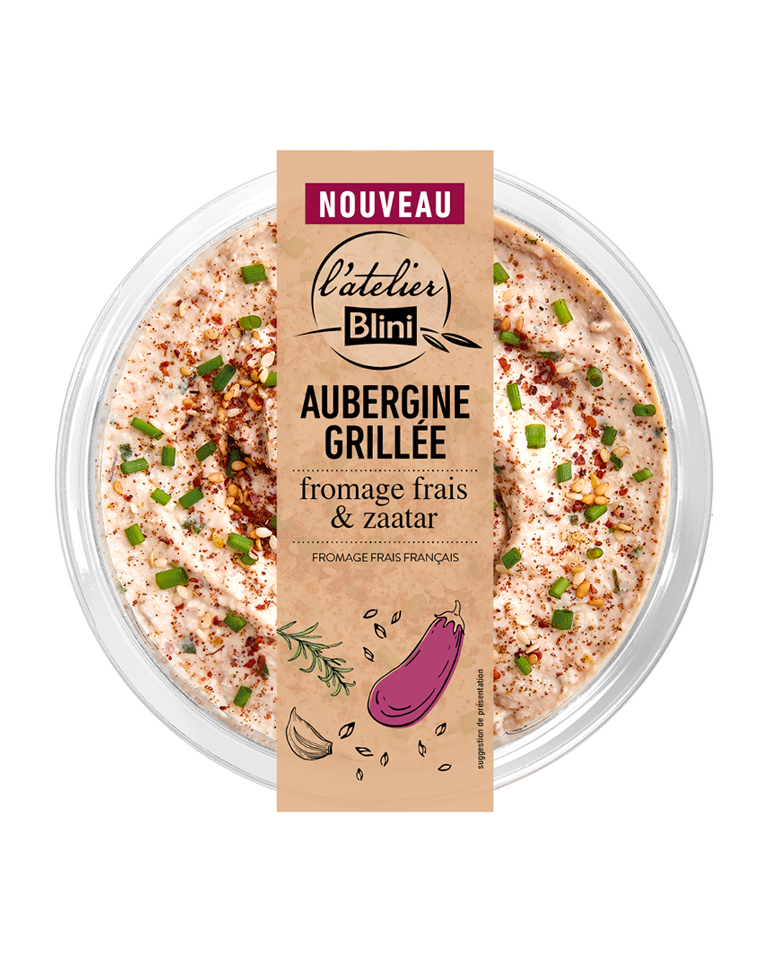 L’aubergine grillée associée au fromage frais et au zaatar développe un profil généreux, relevé par une pointe de cumin et une touche herbacée.