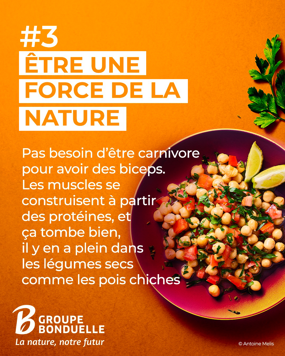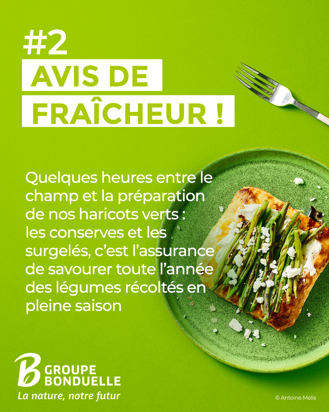 Bonduelle rappelle que la conserve ne contient aucun additif, que la surgélation permet de capturer la fraîcheur au champ, et que les légumes secs ont toute leur place dans l’assiette d’un sportif.