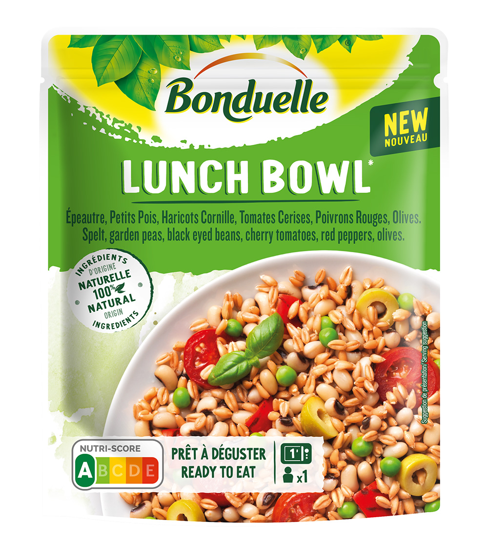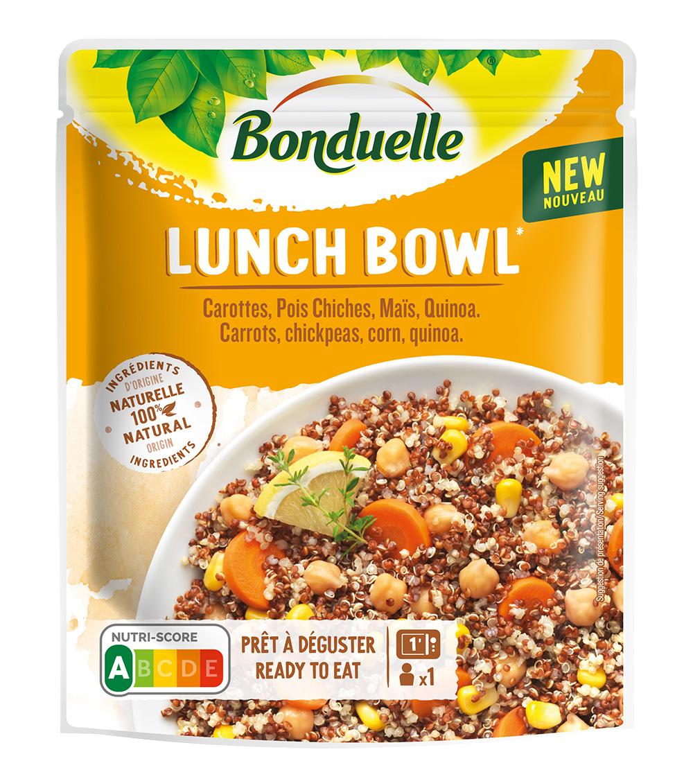 Avec des ingrédients 100% d’origine naturelle, un Nutriscore A et 30% de généreux morceaux de légumes, la gamme Lunch Bowl, en plus d’être savoureuse, est résolument dans l’air du temps. Surfant sur la tendance végétale, ces recettes associent céréales, légumes et légumineuses pour combiner leurs qualités nutritionnelles. Dans le cadre d’une alimentation variée et équilibrée, elle offre le plat idéal pour aborder la seconde partie de la journée avec vitalité.