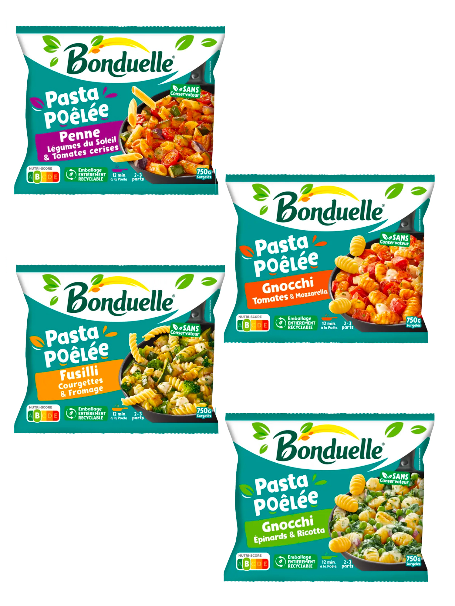 Bonduelle fait une place de choix aux pâtes dans son rayon surgelé avec une série de recettes végétariennes prêtes à poêler.