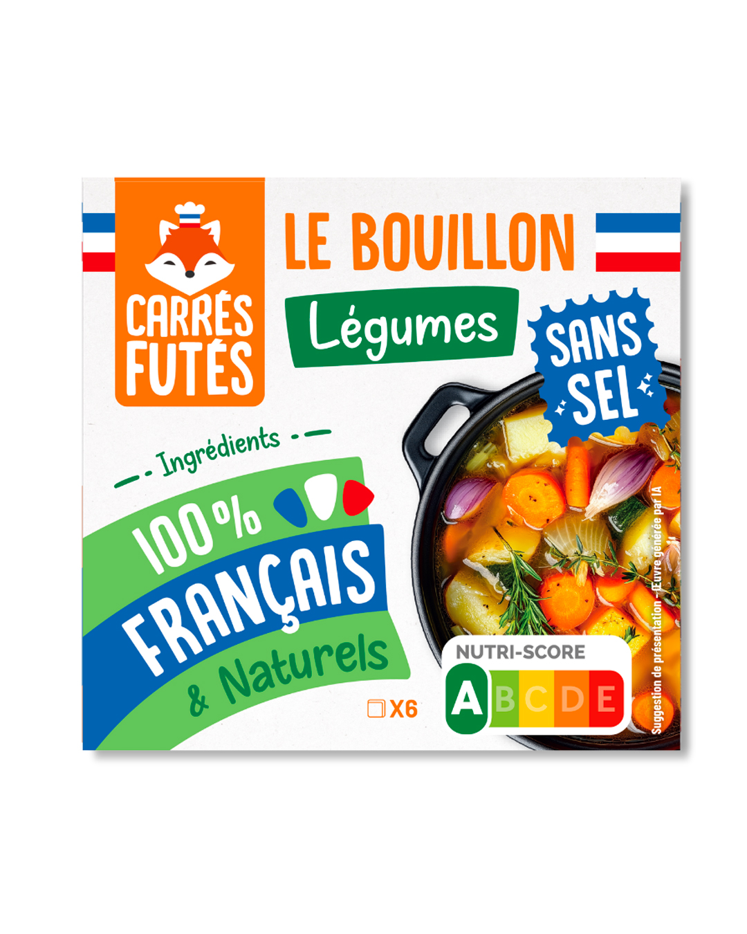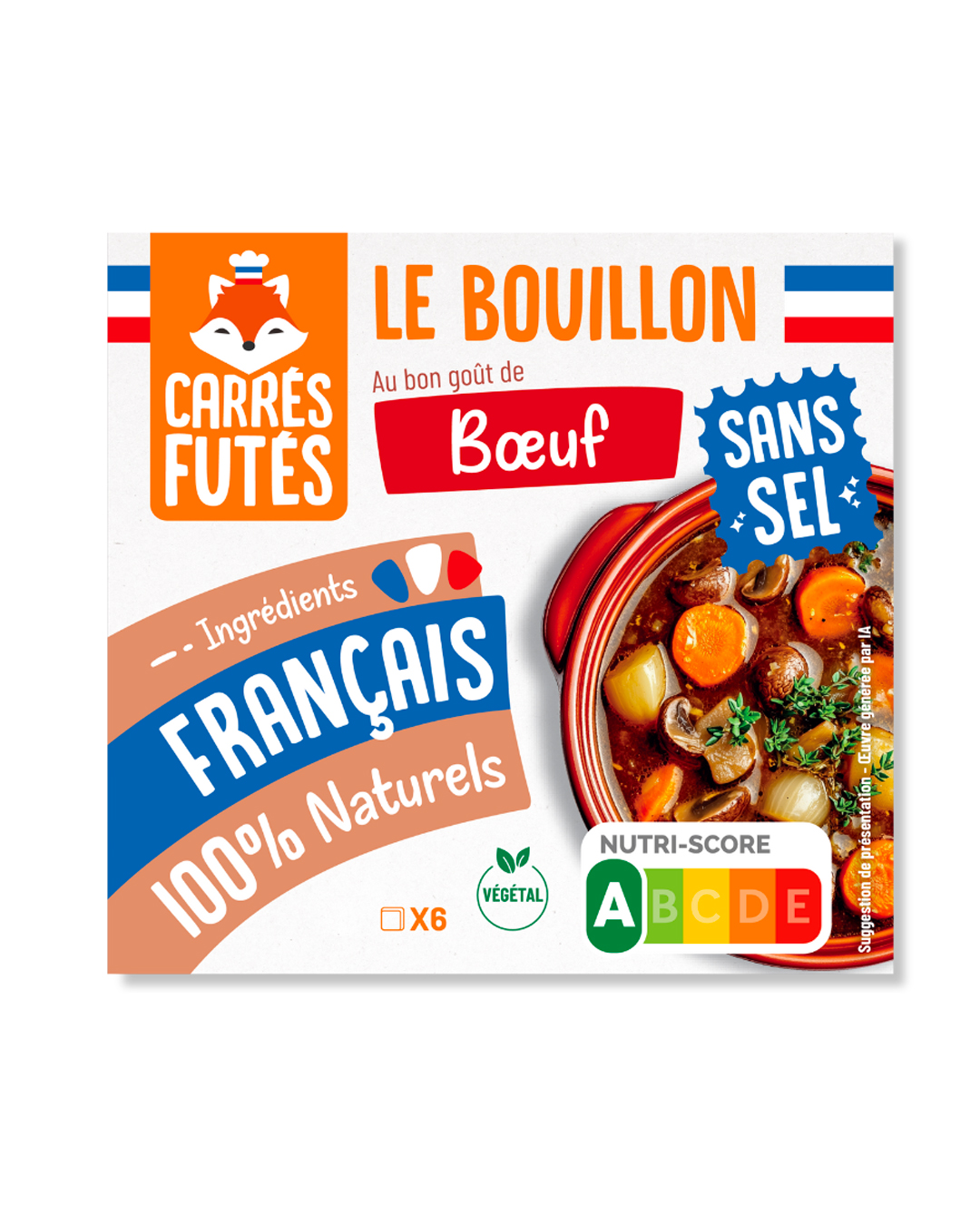 Carrés Futés bouscule les habitudes avec une gamme de bouillons cubes sans sel ni sucre ajouté, en goût bœuf, volaille ou légumes.