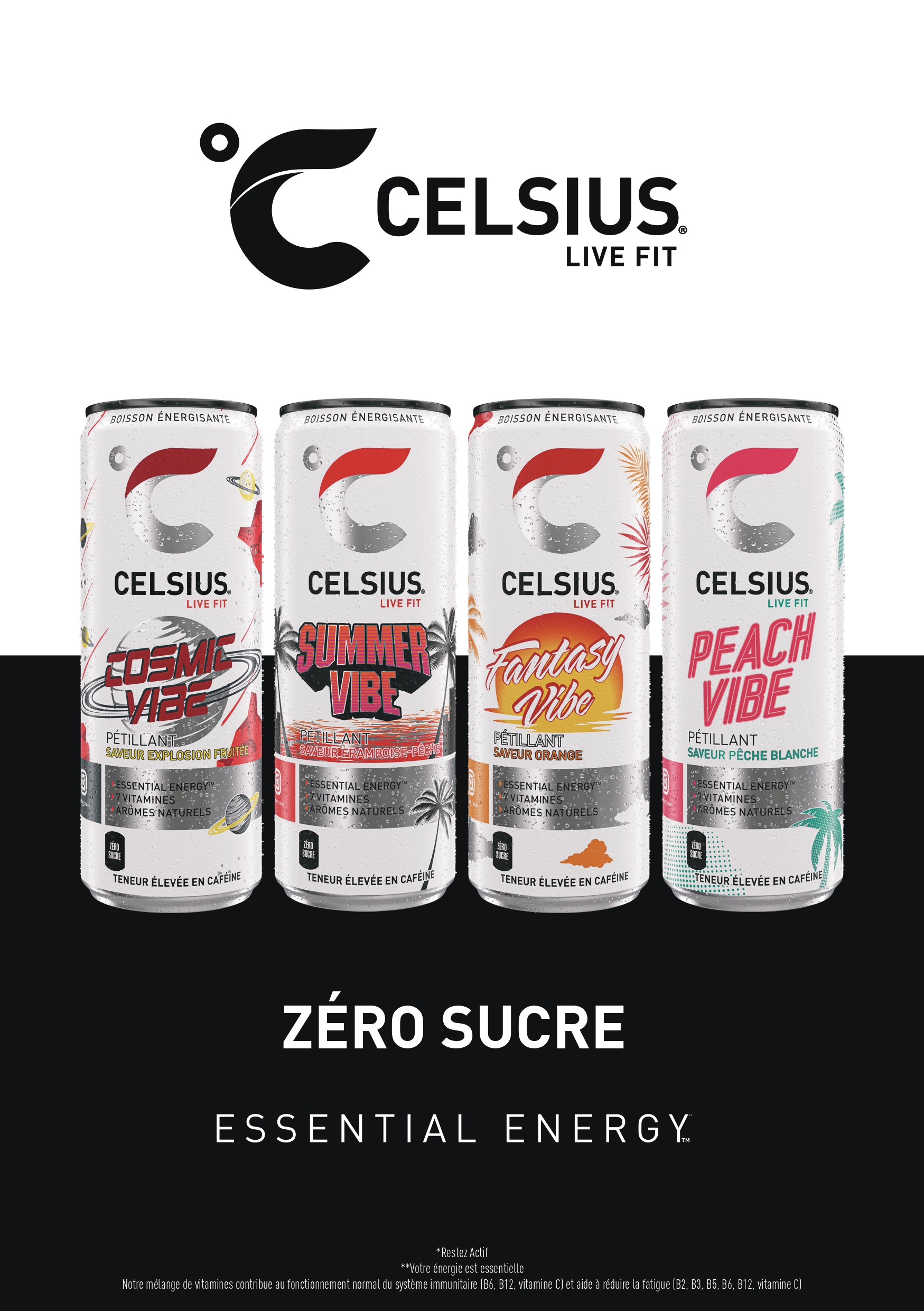 Celsius, la boisson énergisante venue tout droit des États-Unis, fait ses premiers pas en France en s’installant dans les rayons de Carrefour. Avec son positionnement « LIVE FIT™ », la marque cible les adeptes de vie active en quête d’un coup de boost sans compromis sur le bien-être.