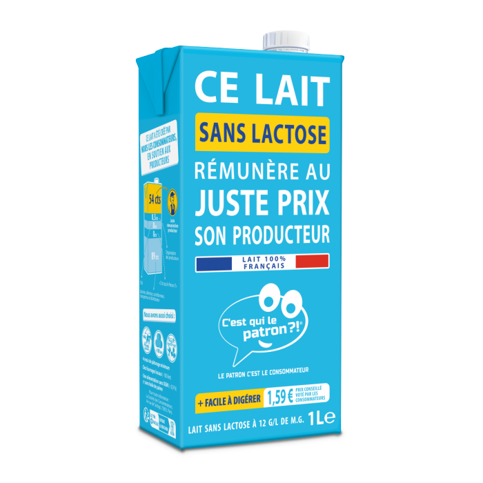 La marque coopérative C’est qui le Patron ?! poursuit son engagement en faveur d’une consommation équitable avec une brique de lait sans lactose qui garantit une rémunération juste pour les producteurs.