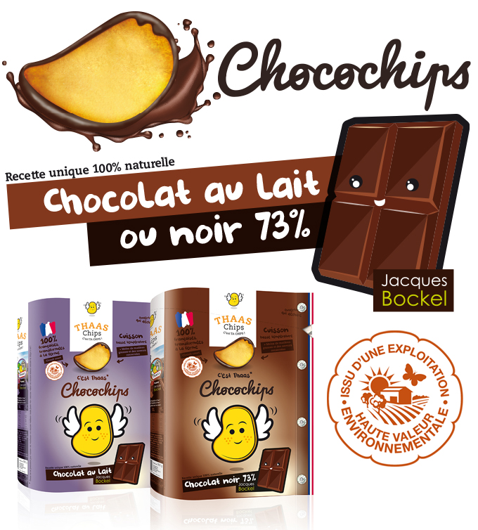 Et faut-il le rappeler, toutes nos chips même recouvertes de chocolat sont sans conservateurs, sans huile de palme, et sans arômes artificiels, issues d’une exploitation HVE (Haute Valeur Environnementale).