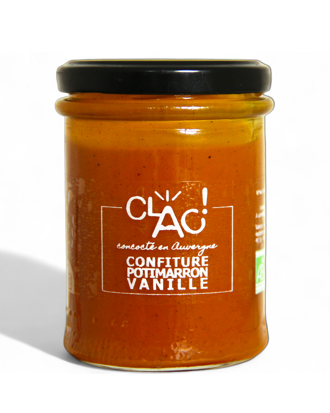 La confiture potimarron & vanille marie la rondeur du cucurbitacé à une note délicatement parfumée.