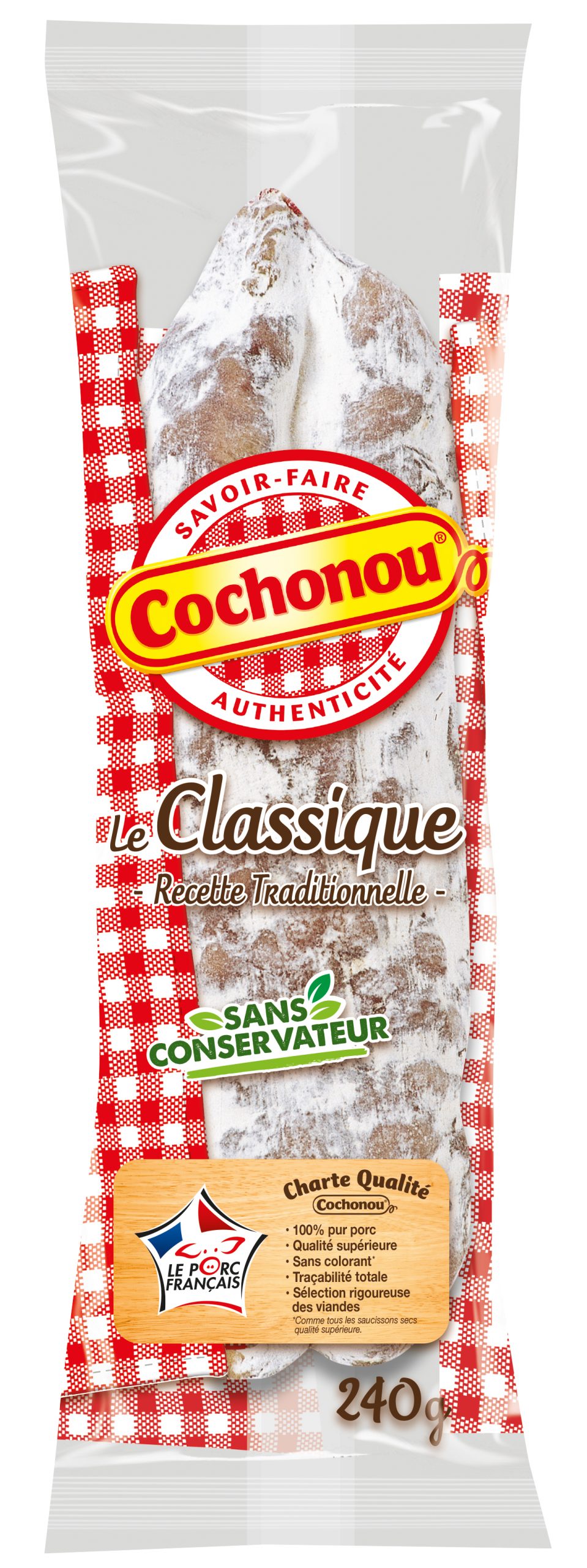 Le nouveau processus de fabrication, qui permet aujourd’hui de proposer ces nouvelles pièces sans conservateur, allie recherche et savoir-faire pour un maximum de saveurs et de plaisir gustatif ! Le goût et la conservation de la qualité supérieure 100% pur porc de ces deux saucissons iconiques sont respectés.