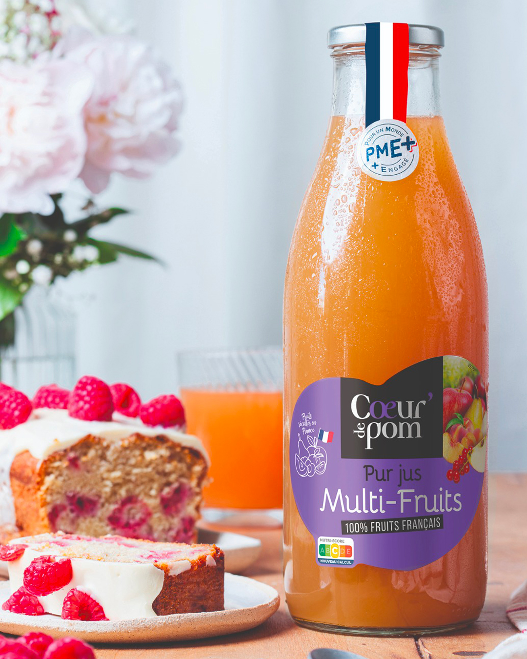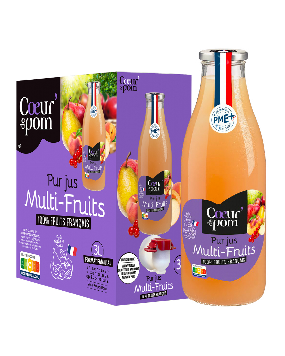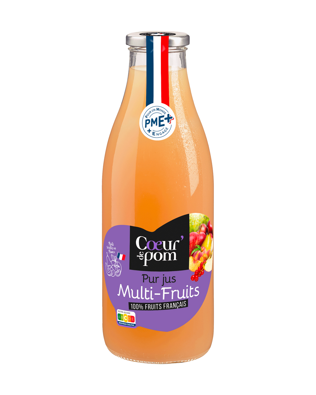 Cœur de Pom’ propose un jus multi-fruits qui s’appuie sur une sélection exclusivement issue de vergers français.