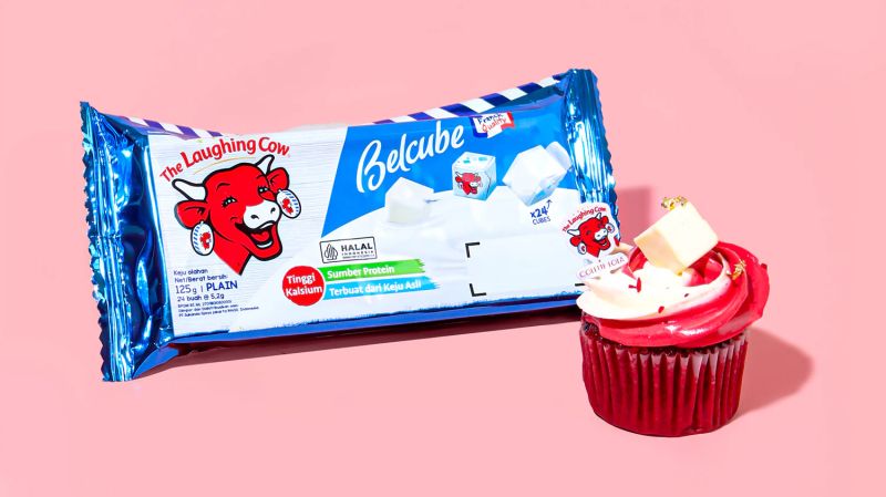 En Indonésie, Colette Lola propose une double création autour des fromages de la marque The Laughing Cow, produite par le groupe français Bel. Un clin d’œil assumé aux souvenirs d’enfance où les cubes Belcube faisaient office de goûter validé par les parents.