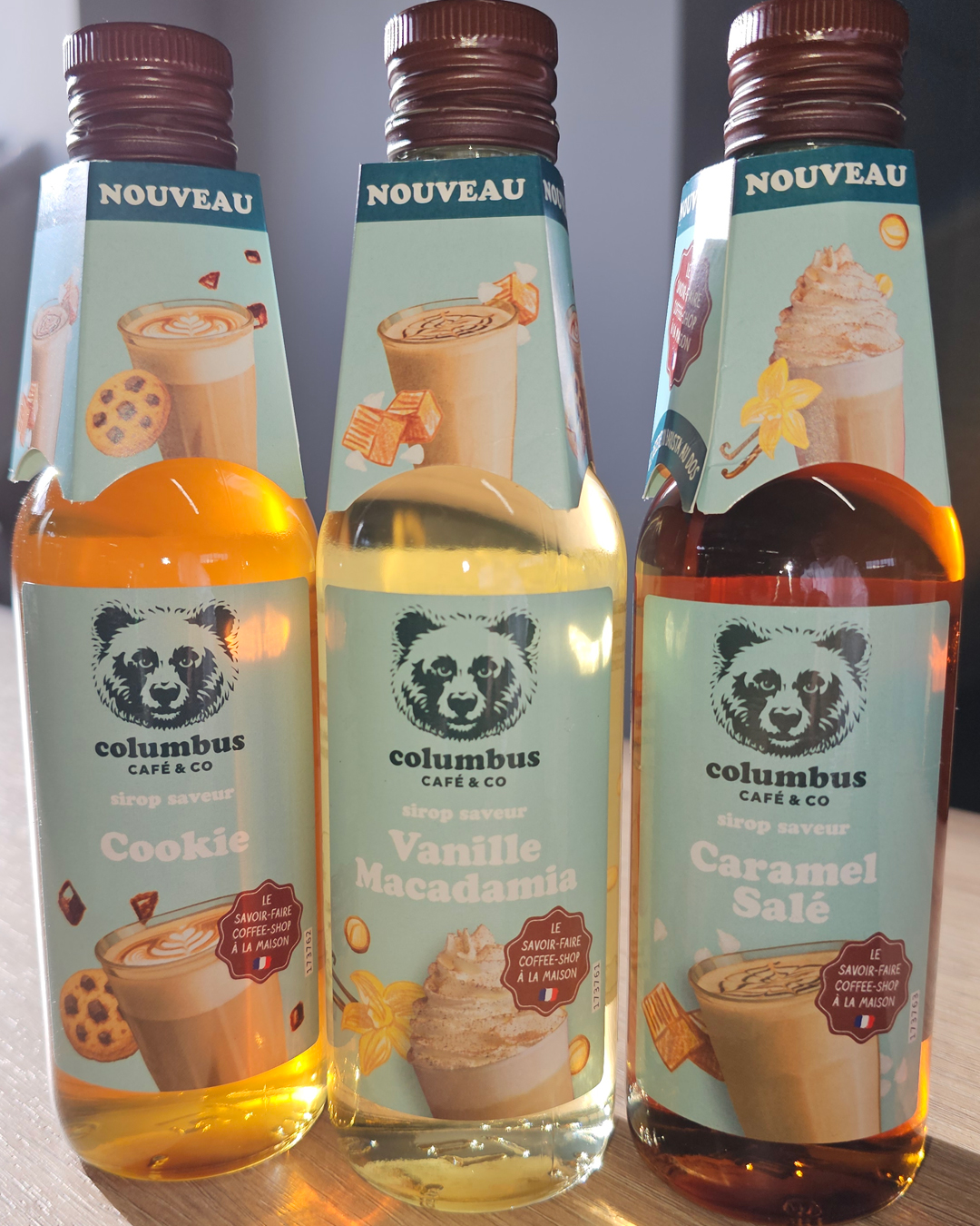 Caramel salé, vanille macadamia et cookie composent ce trio destiné à accompagner cafés, lattés ou boissons froides.
