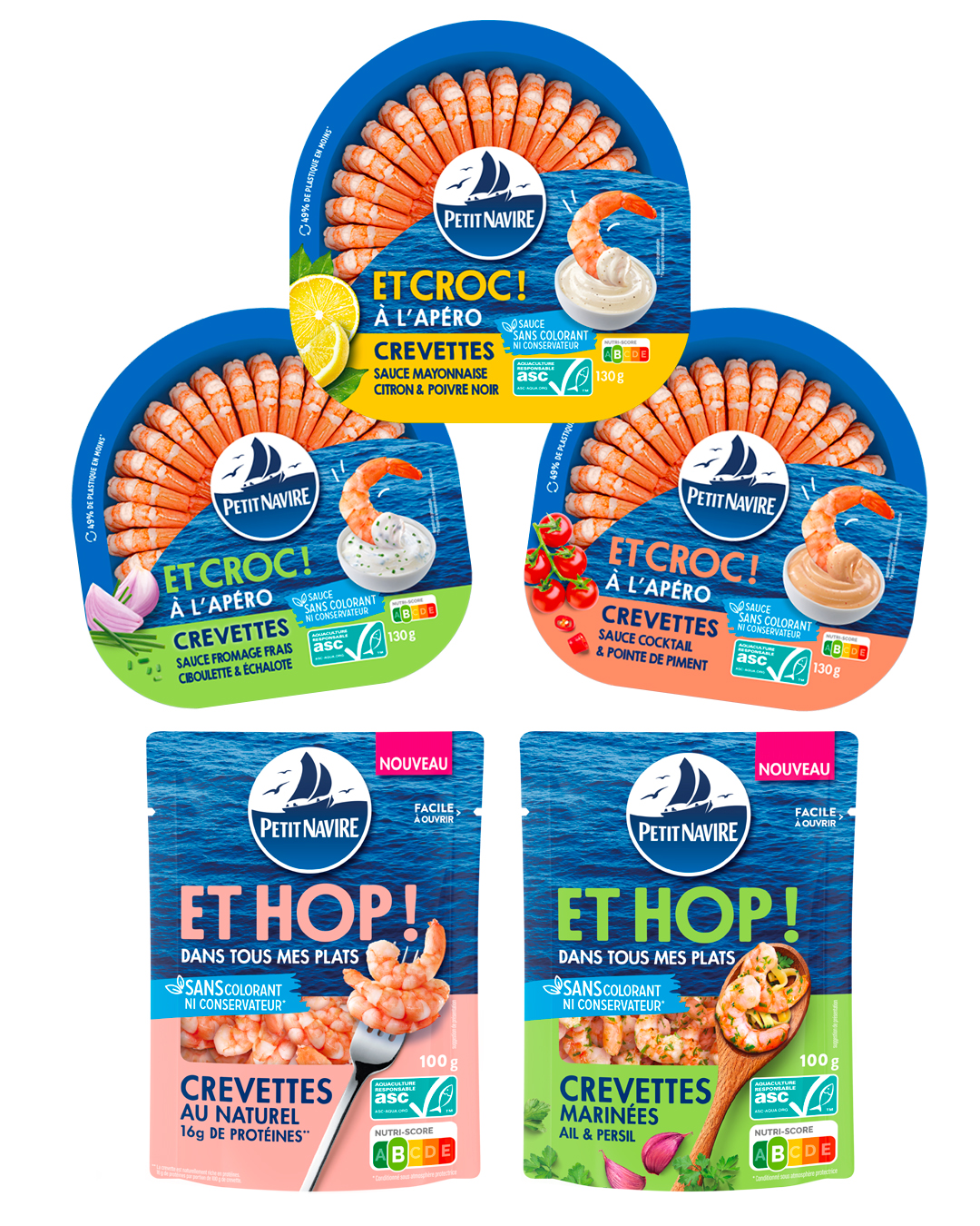 - ET HOP ! pour les repas du quotidien (crevettes décortiquées, prêtes à l’emploi, formats pratiques)