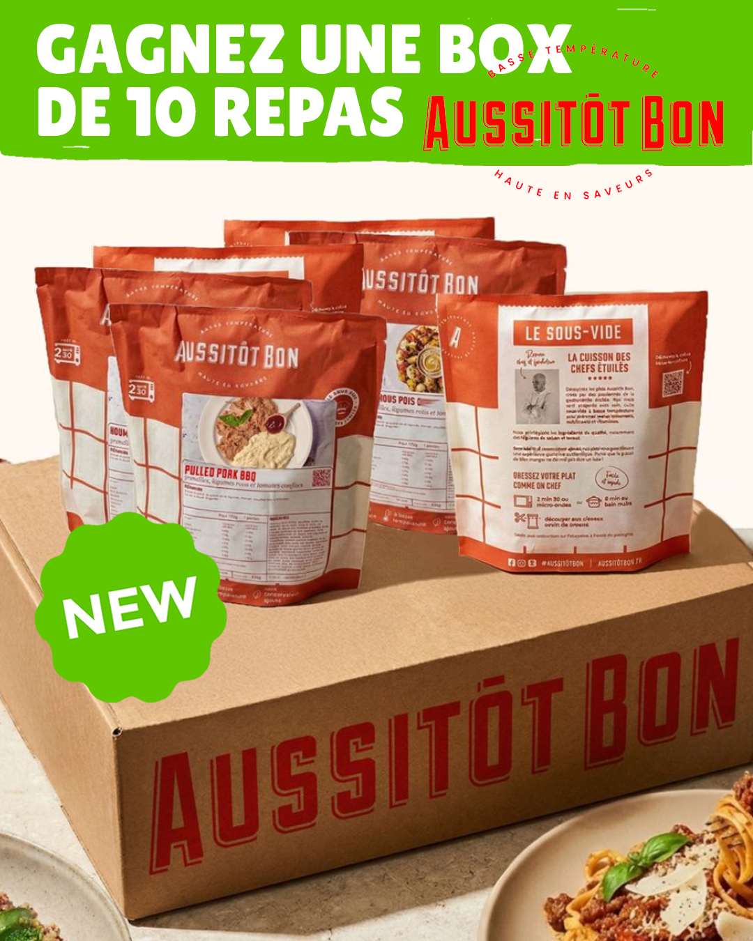 🎁 À gagner : une box de 10 repas Aussitôt Bon, à savourer tout au long de la semaine.