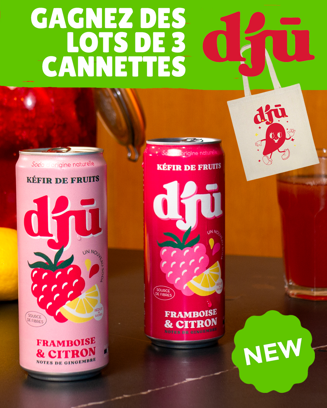 🍹 3 canettes de djū Framboise Citron – une explosion de fraîcheur avec une pointe de gingembre
