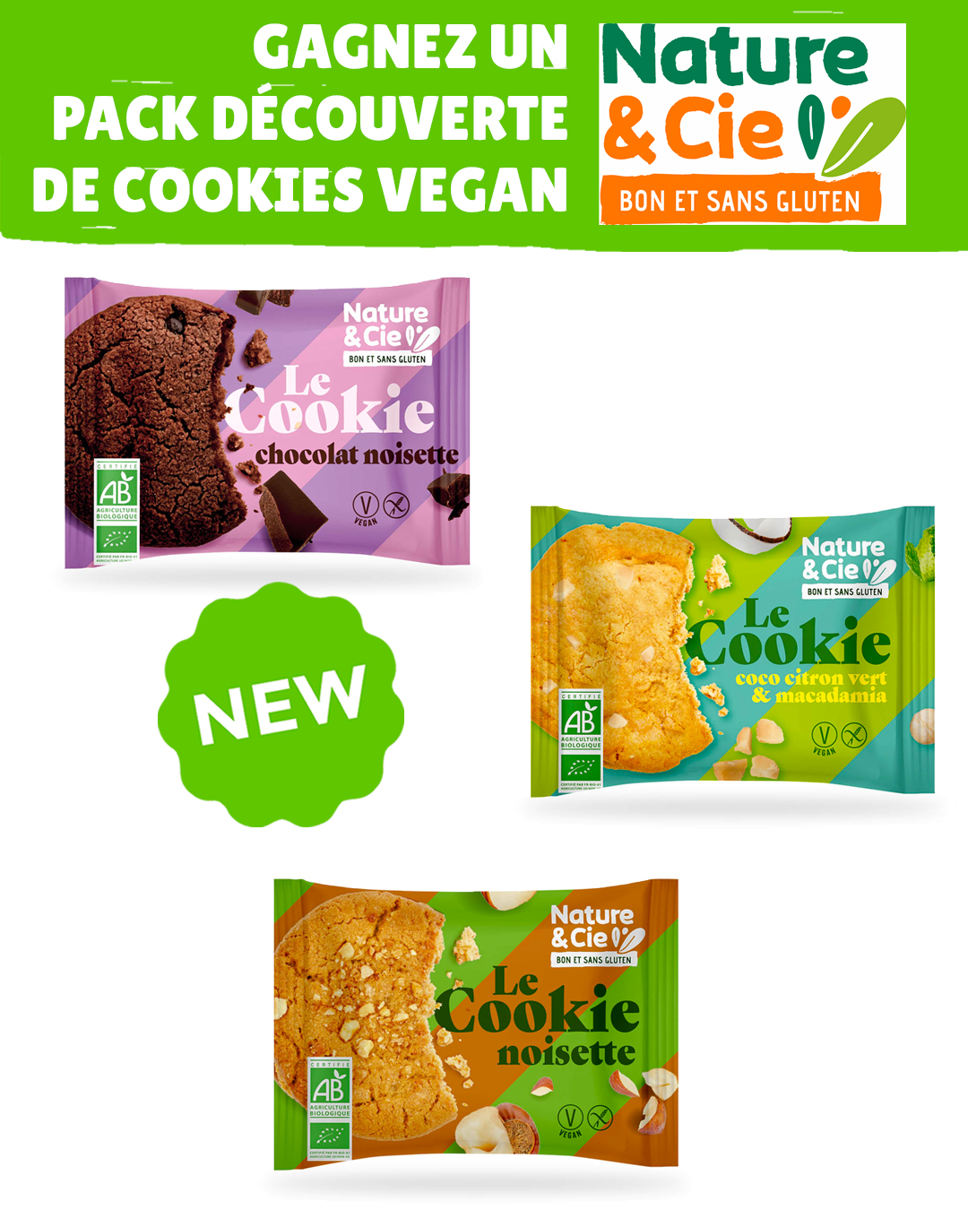 🎁 À gagner : 1 pack découverte des 3 recettes de cookies vegan Nature & Cie :