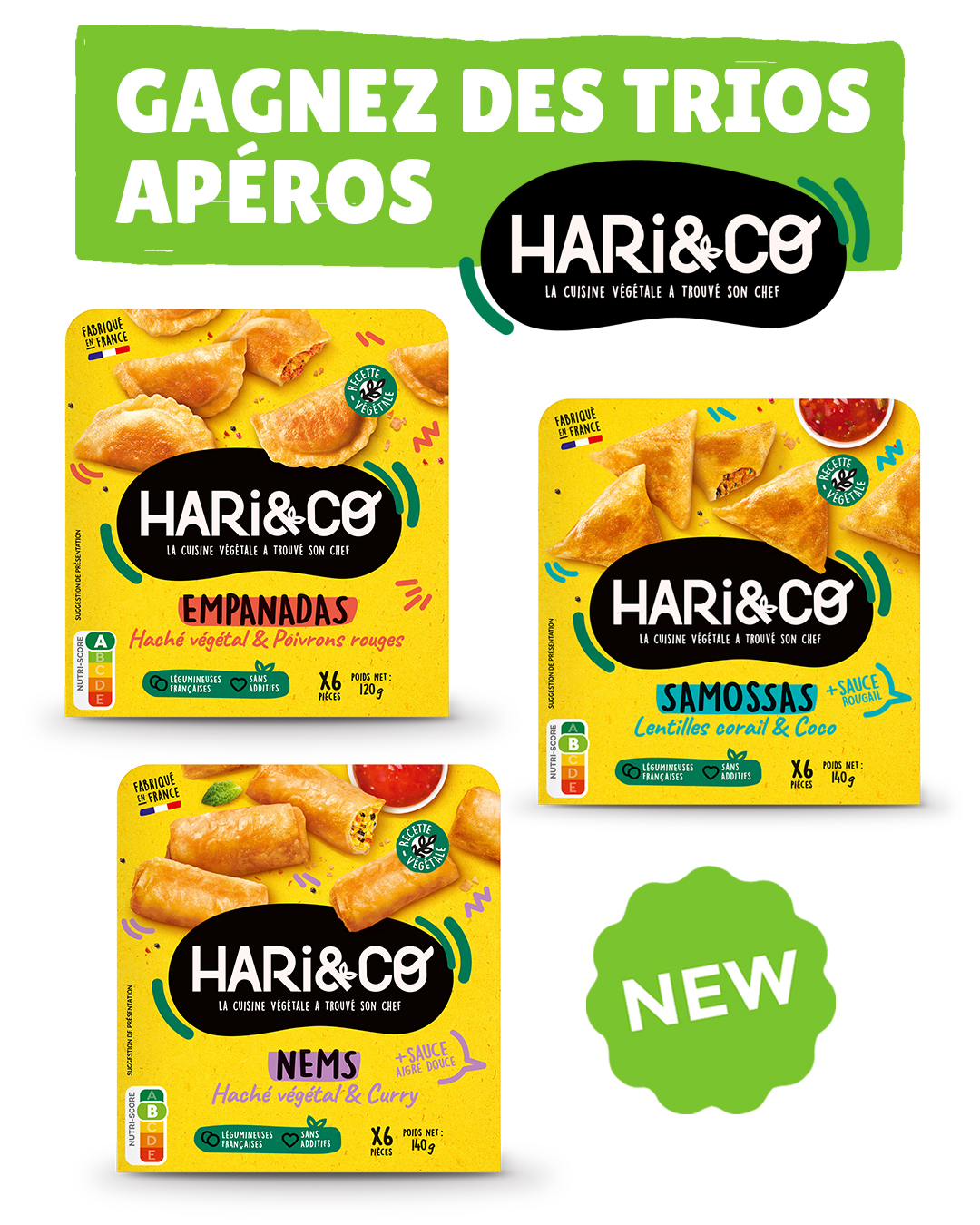 À gagner : 3 lots composés de la gamme apéro HARi&CO : Samossas + Empanadas + Nems