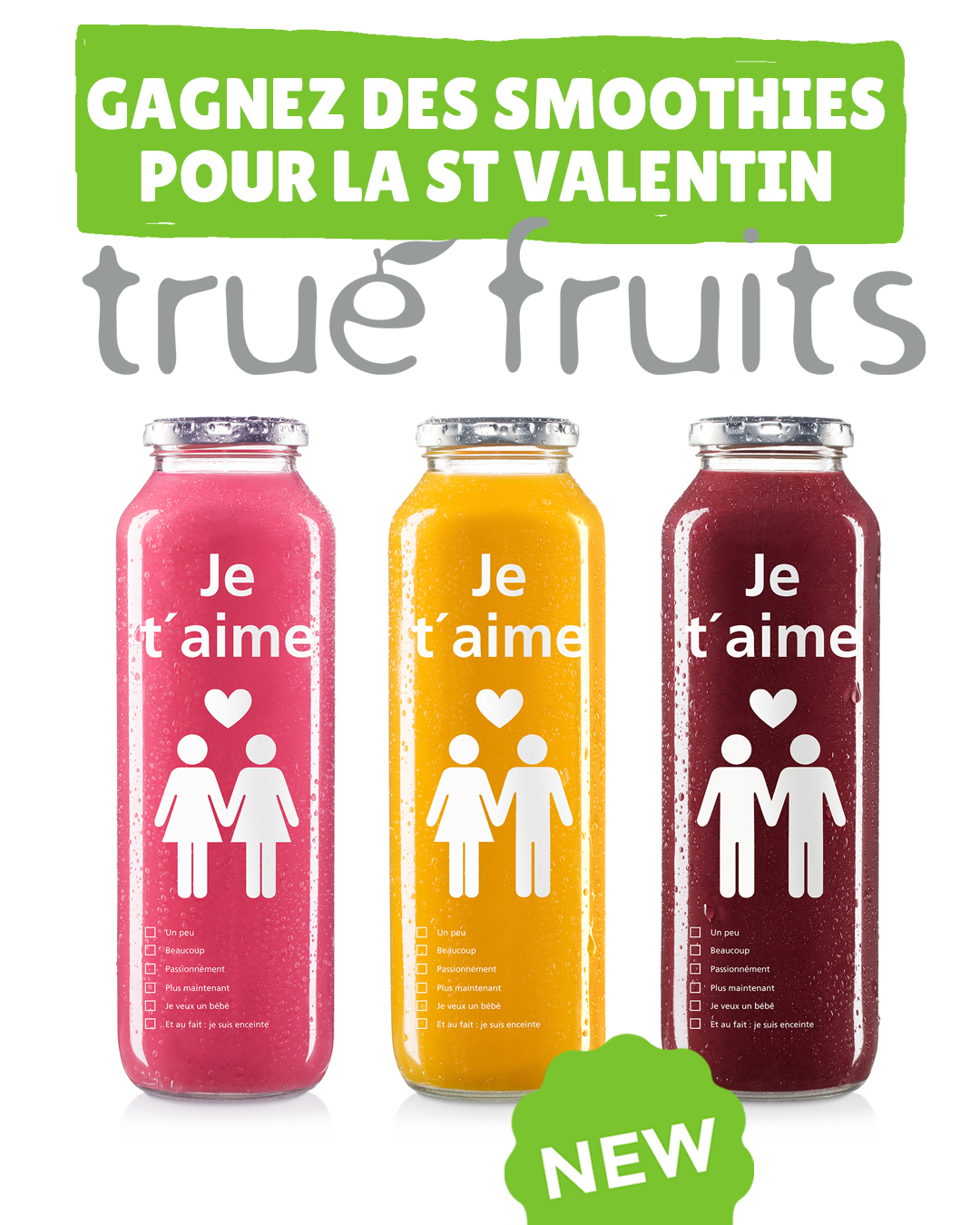 À gagner : une trilogie de smoothies « Je t’aime » pour déclarer votre flamme… ou provoquer un fou rire.