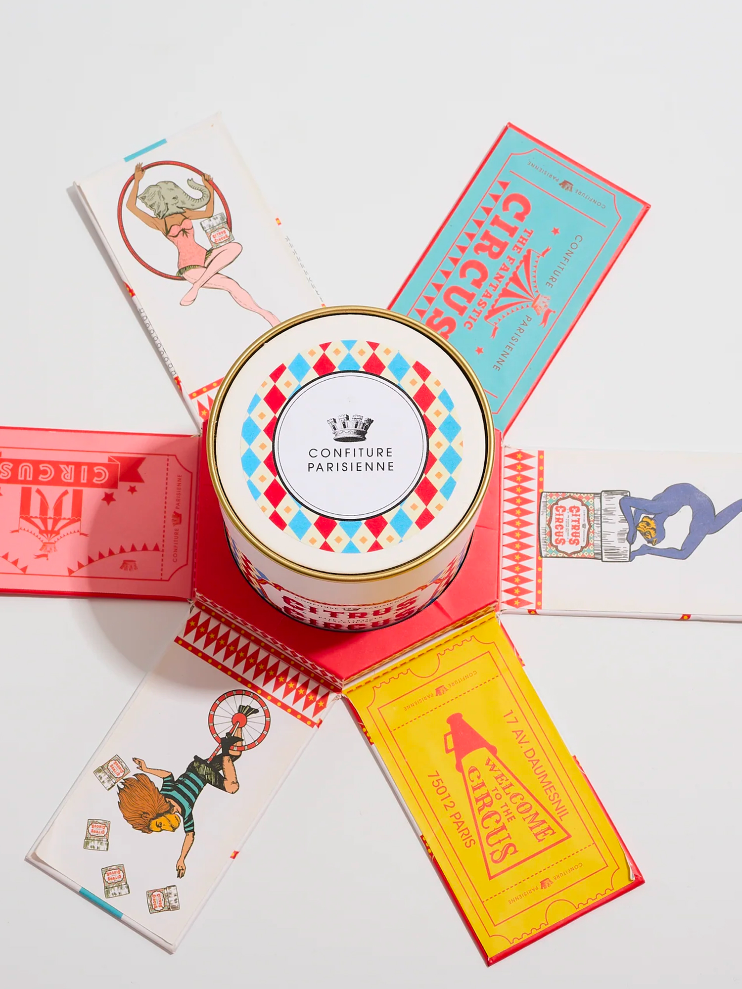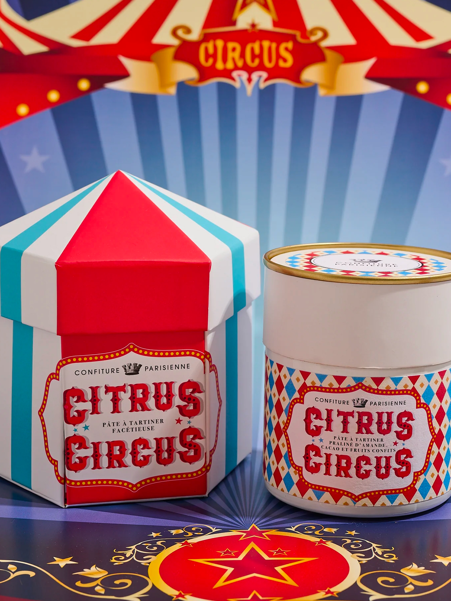 Pensé pour les fêtes de fin d’année, Citrus Circus s’habille aussi d’un coffret en forme de chapiteau, clin d’œil assumé au monde du cirque.