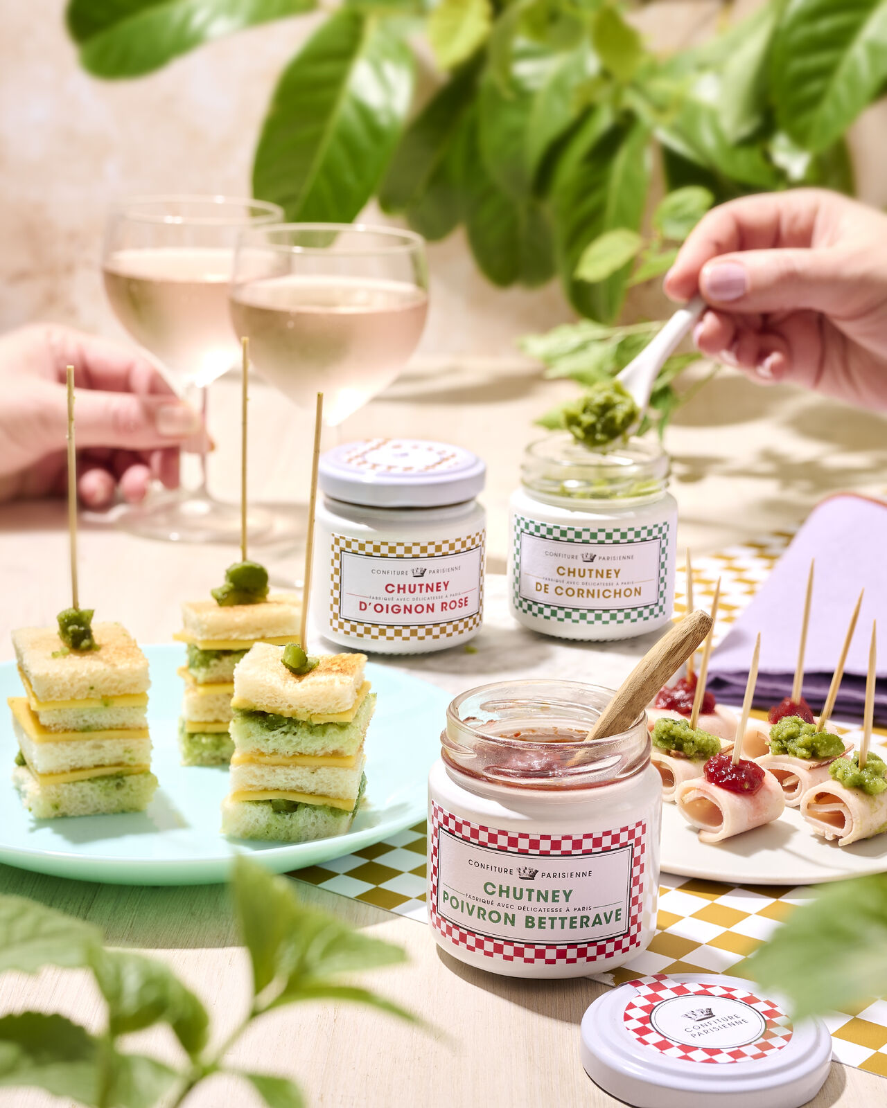 Dites adieu aux cornichons qui tombent de votre sandwich ! Le chutney de cornichon, une création audacieuse, s’associe parfaitement avec le jambon pour une tartine stable et savoureuse. Ce n’est plus un secret, Confiture Parisienne transcende le petit-déjeuner et s’invite désormais sur vos tables d’apéritif.