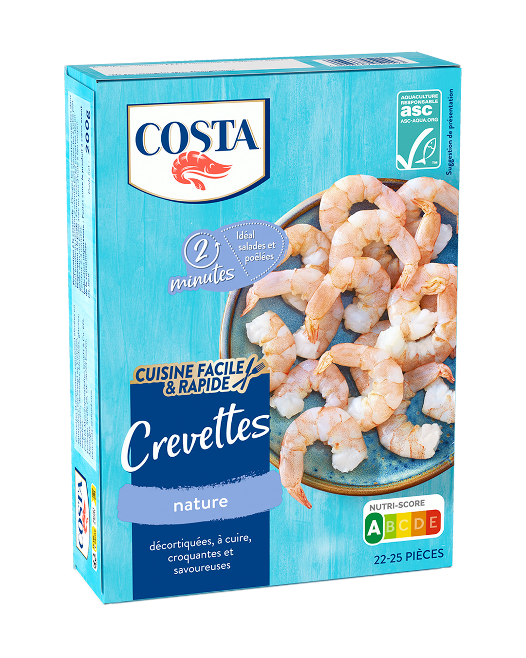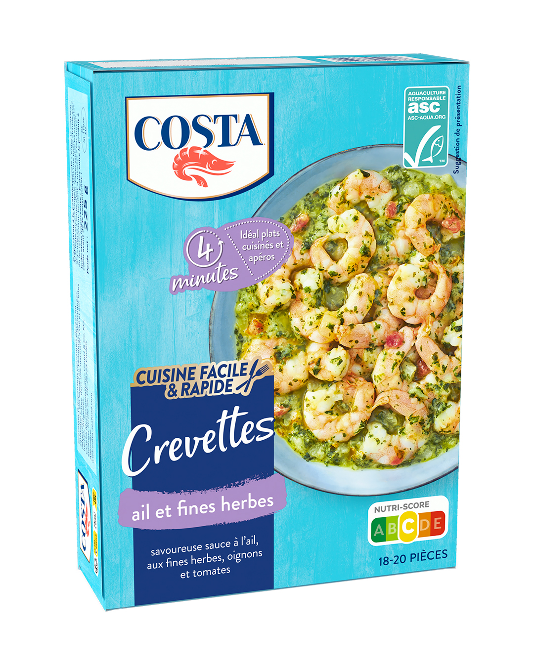 Costa, spécialiste des fruits de mer surgelés, propose une nouvelle gamme pour les amateurs de crevettes en quête de simplicité. « cuisine facile & rapide » regroupe trois déclinaisons pensées pour s’adapter à toutes les occasions : nature, ail et fines herbes, et panure croustillante.