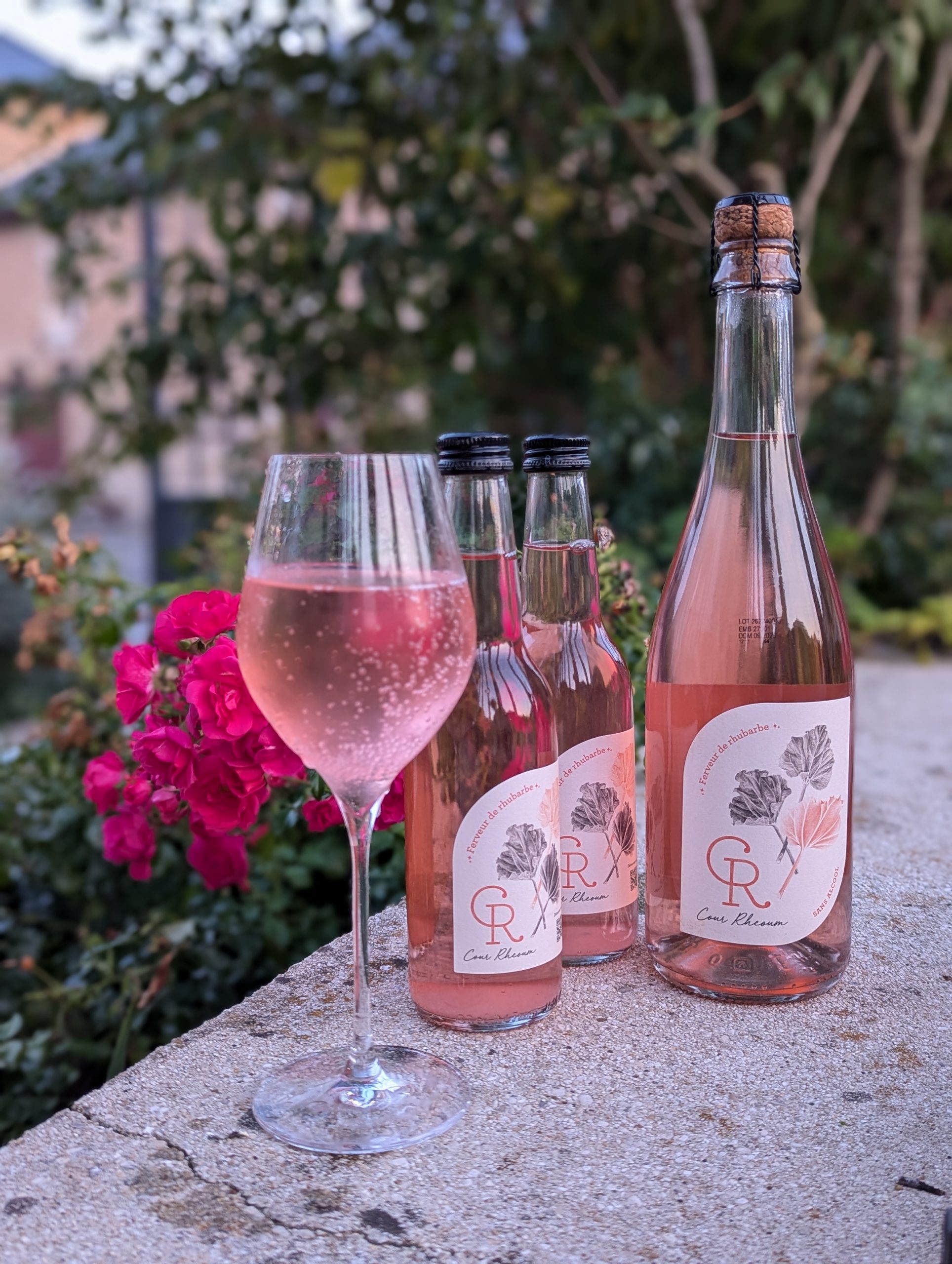 Cour Rheoum apporte une touche pétillante aux apéritifs avec sa Ferveur de rhubarbe, une boisson sans alcool élaborée à partir de rhubarbes cultivées sans produits chimiques dans les Ardennes.