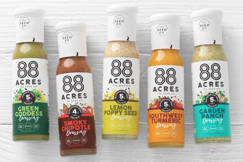 88 Acres qui est connue pour ses barres, ses beurres et ses produits granola à base de graines, présente des vinaigrettes à base de graines en tant que nouvelle offre de longue conservation, regorgeant de protéines végétales.