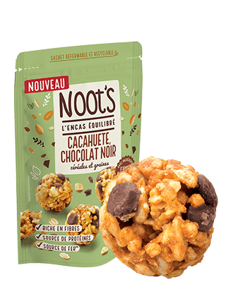 Les cinq recettes d’encas sains et équilibrés Noot’s ont été pensées pour répondre à tous les petits creux ! Des petites boules de céréales et fruits secs qui agissent comme un vrai coup de Noot’s dans votre journée. Cinq recettes, 2 formats, une seule philosophie : le naturel au quotidien !