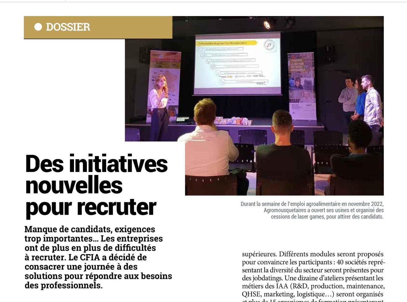 (…) Beaucoup d’en treprises essaient de repenser les codes pour attirer de nouveaux talents. Fin janvier, vingt marques (Savéol, Candia, Aoste, …) de la Communauté pour nourrir demain ont lancé une campagne de CV inversés à destination de futurs candidats. Elles affichent leurs réalisaitons, expériences, récompenses et valeurs sur une plateforme en ligne où les candidats peuvent écrirer et envoyer leur CV. (…)