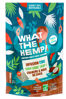 What The Hemp a imaginé et conçu deux nouvelles infusions : Infusion CBD SOFT AND SWEET et Infusion CBD VERY GOOD TRIP à consommer pour se détendre. Les sachets fraîcheur de 24g renferment un mélange audacieux de plantes, dont le chanvre, pour apporter tous leurs bienfaits.