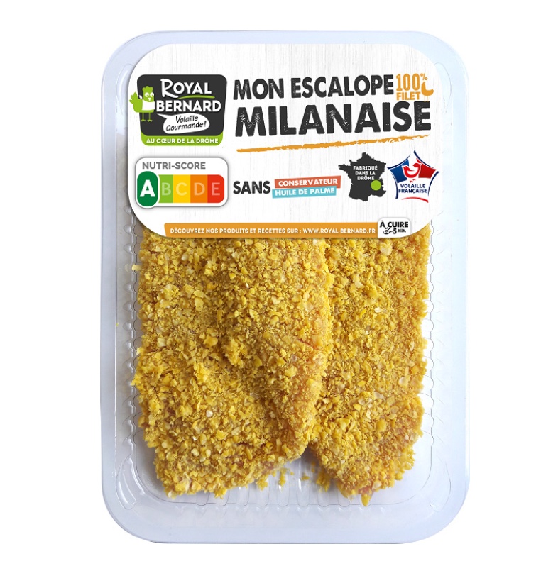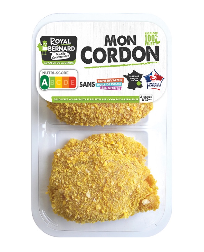 Mieux : cordons bleus, escalopes de dinde à la milanaise et tendres bouchées de volaille sont enfin riches en goût, sains et cuisinés en France, dans la Drôme, à partir de volailles françaises et sans composants controversés.