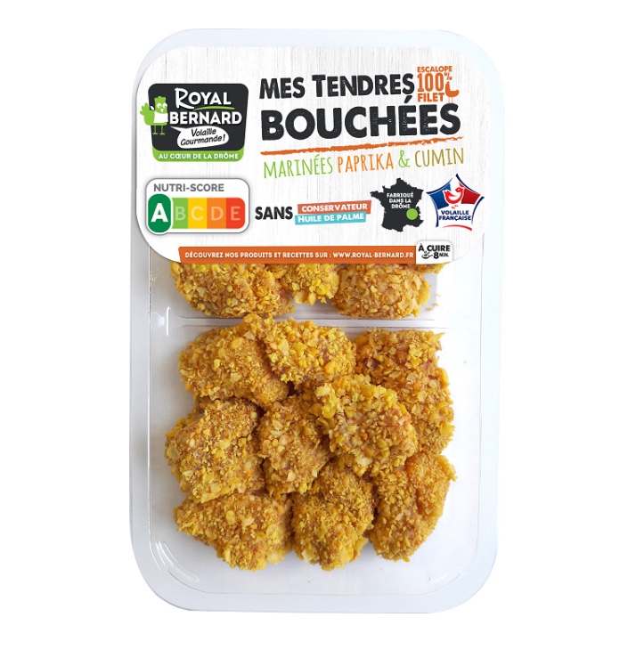 Dans ce contexte, Royal Bernard casse les codes des plats préparés en proposant pour la première fois en France une gamme de produits panés crus de volaille, délicieux et sains, avec un Nutriscore A et très bien notés sur l’appli Yuka.