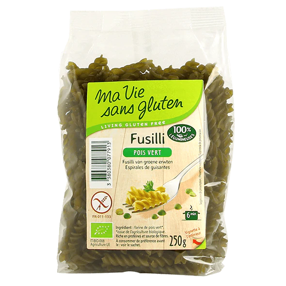 Grâce à un procédé unique de fabrication, la couleur originale de la légumineuse est préservée. Ces fusilli sont une source de protéines végétales rapides à mettre en oeuvre.