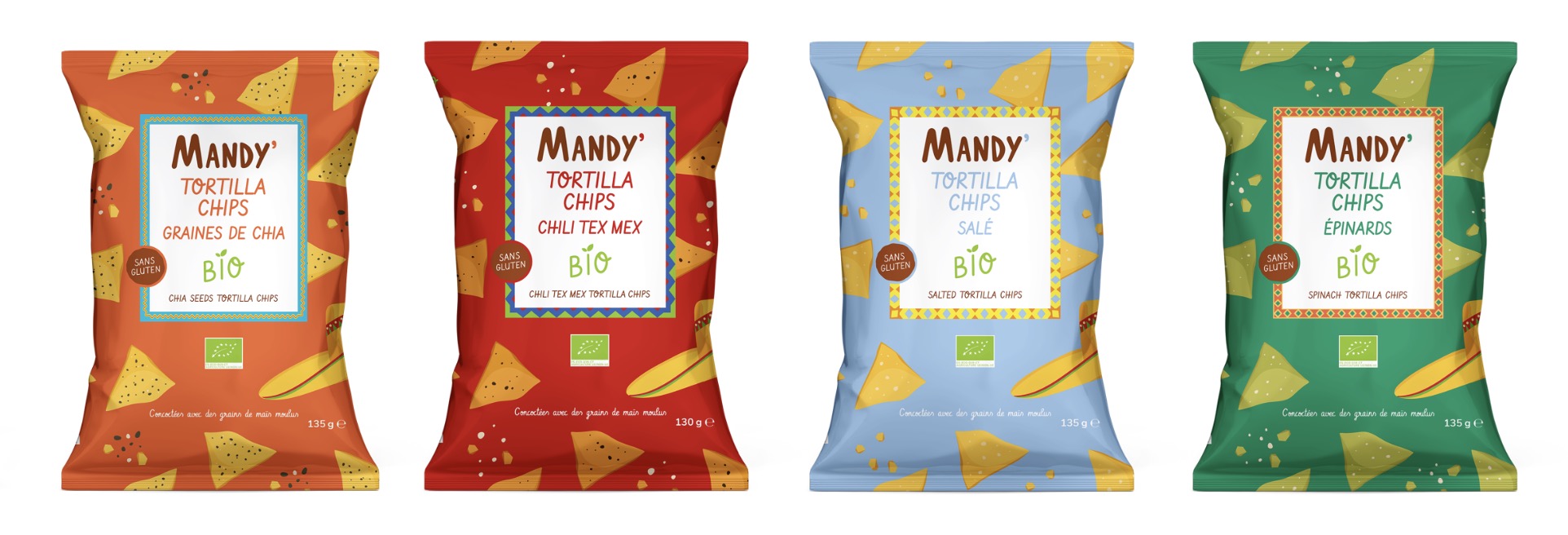 Mandy’ propose propose quatre variétés de tortillas pour mettre tout le monde d’accord. Tortillas aux épinards, original et ultra gourmand, chips tex mex pour pimenter la soirée et surtout le best seller : la tortilla aux graines de chia, Mandy’ est le compagnon de nos apéros les plus festifs.