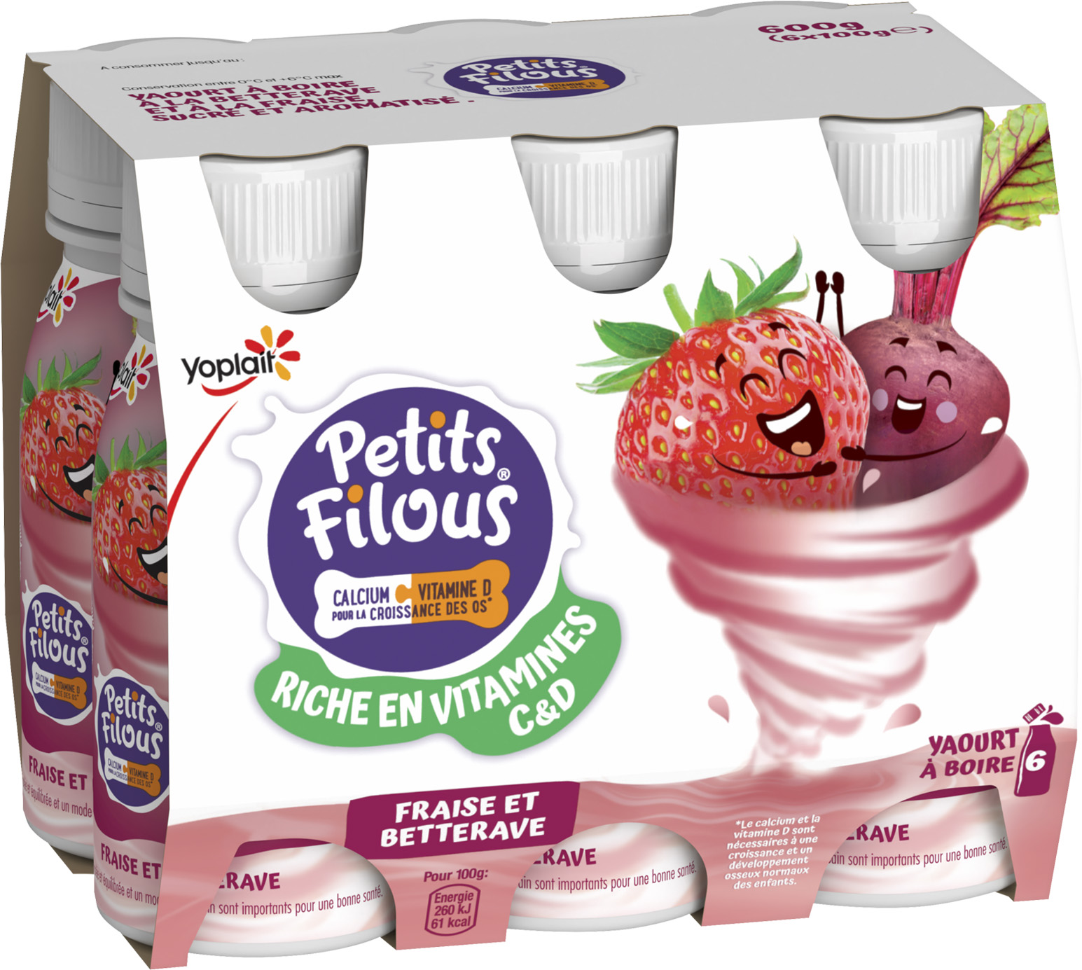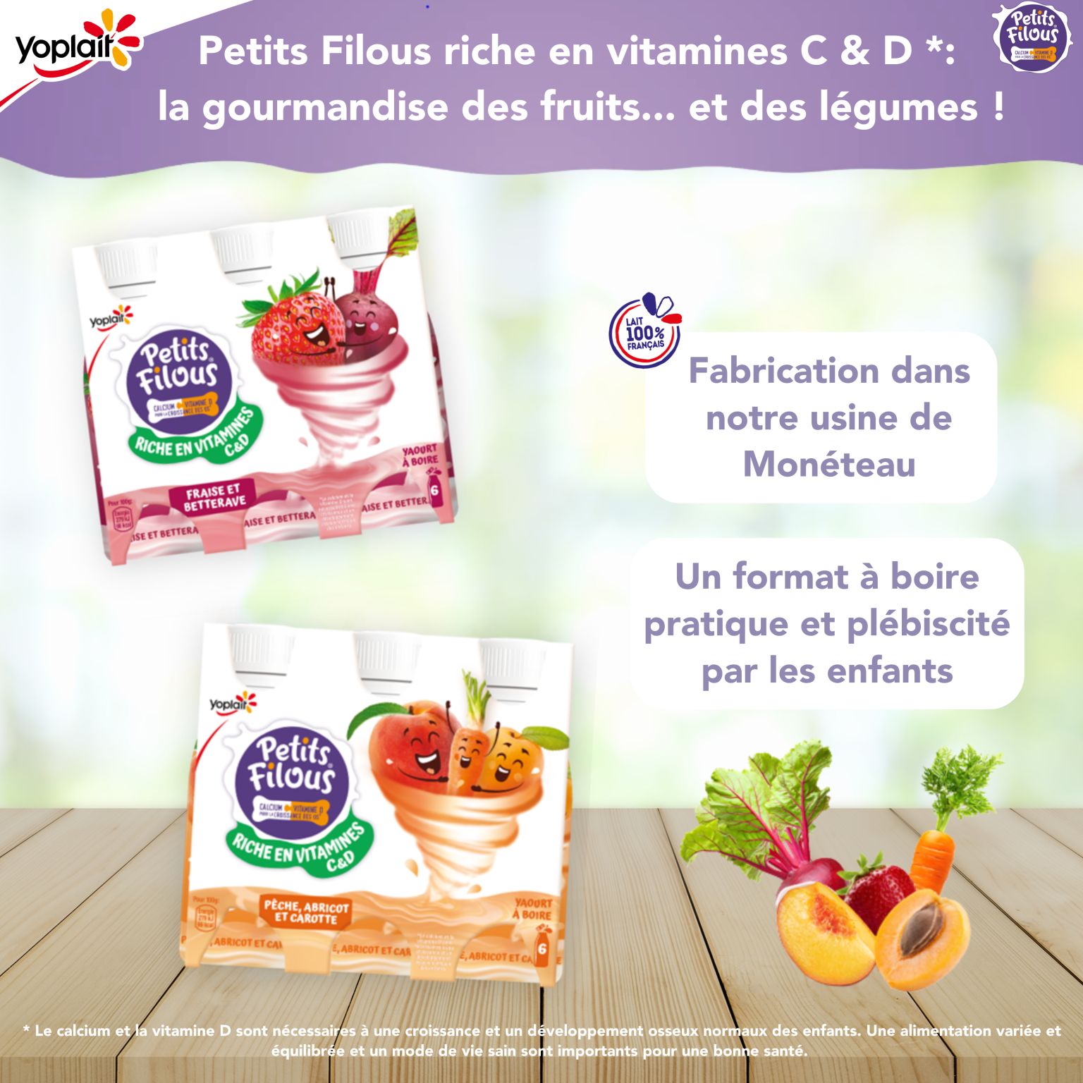 Des yaourts à boire Petits Filous enrichis en vitamines C et D avec des légumes