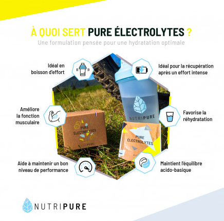 Des études ont démontré que les personnes transpirant lors de fortes chaleurs ou à la suite d’un effort physique, étaient toutes en déficit électrolytique (sodium, zinc, magnésium…). Il a également été prouvé que l’eau seule n’est pas suffisante pour couvrir les besoins de l’organisme lors de ces périodes. Sans arômes artificiels et au goût naturel de citron, Pure Electrolytes rafraîchit et prévient par conséquent les coups de chaleur et les problèmes que la déshydratation engendre.