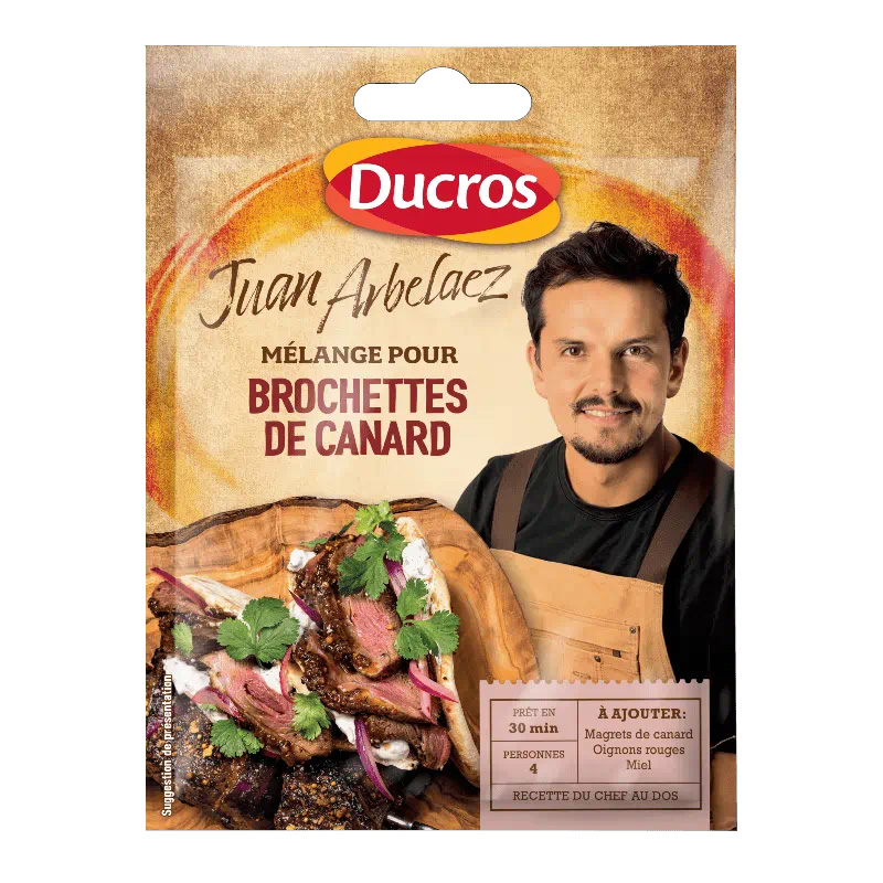 Ducros s’associe au chef Juan Arbelaez pour lancer une gamme de mélanges d’épices dédiée aux barbecues. Le célèbre chef, connu pour son passage à Top Chef et ses chroniques culinaires sur Quotidien, a concocté quatre mélanges spécifiques : steak méditerranéen, poulet croustillant, poisson à la plancha, et brochettes de canard.