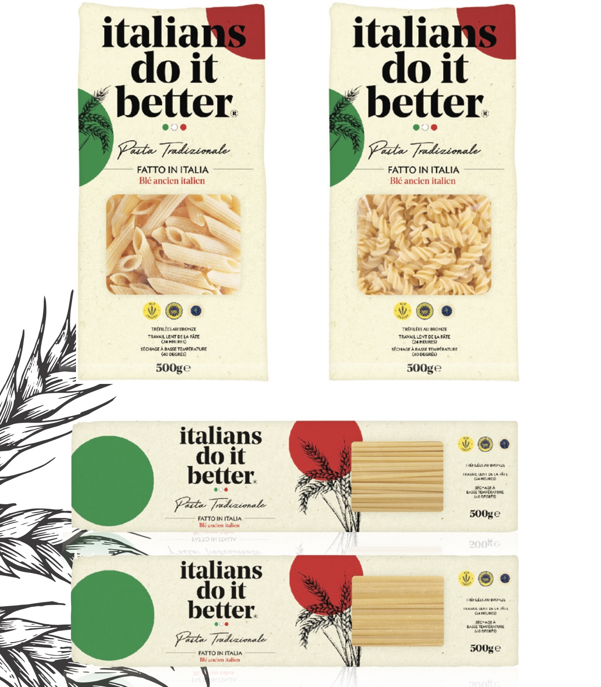 Des produits ancrés dans le terroir italien certifiés IGP et une nouvelle charte graphique pour la gamme féculent d’Italians do it better®