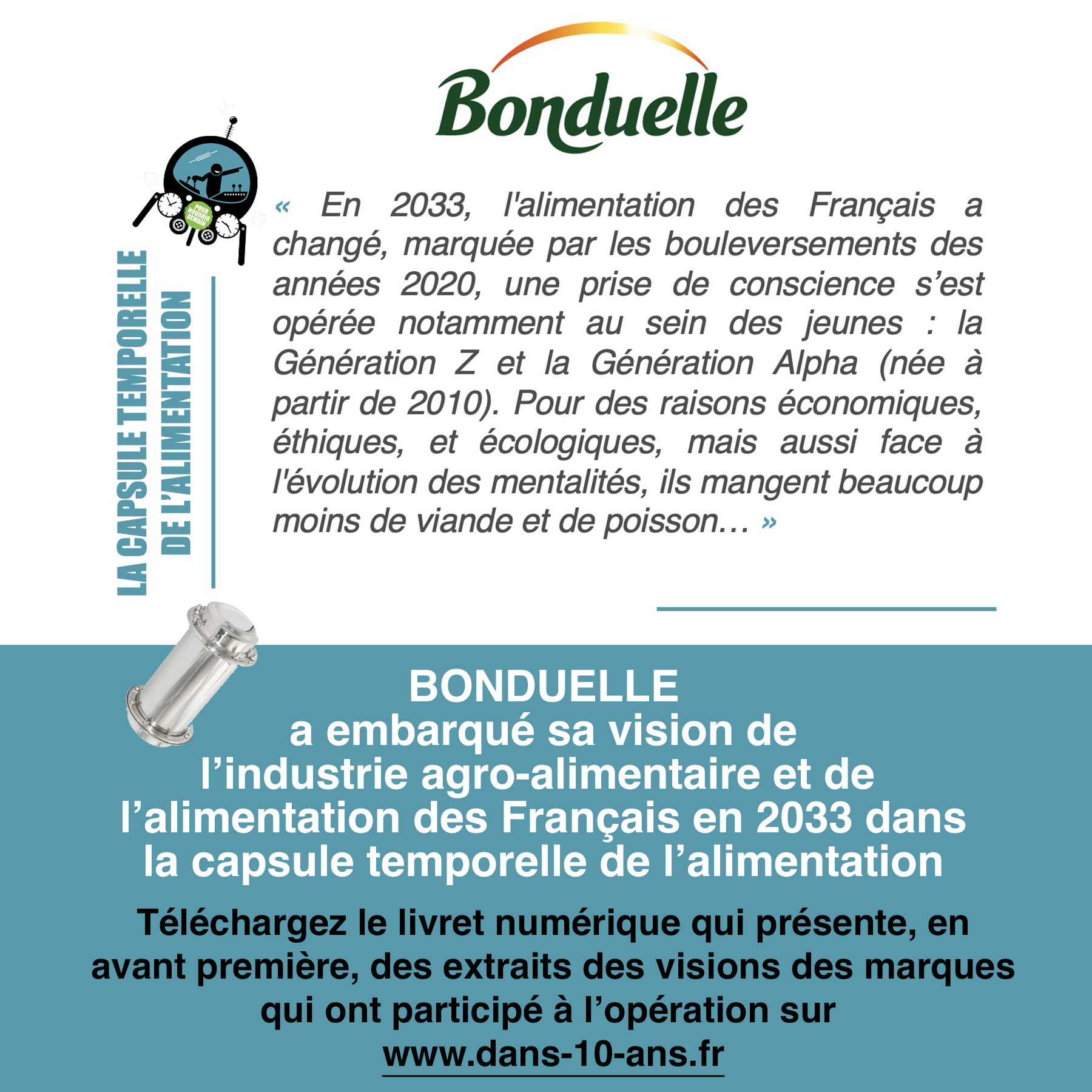 BONDUELLE a embarqué sa vision de l’industrie agro-alimentaire et de l’alimentation des Français en 2033 dans la capsule temporelle de l’alimentation.