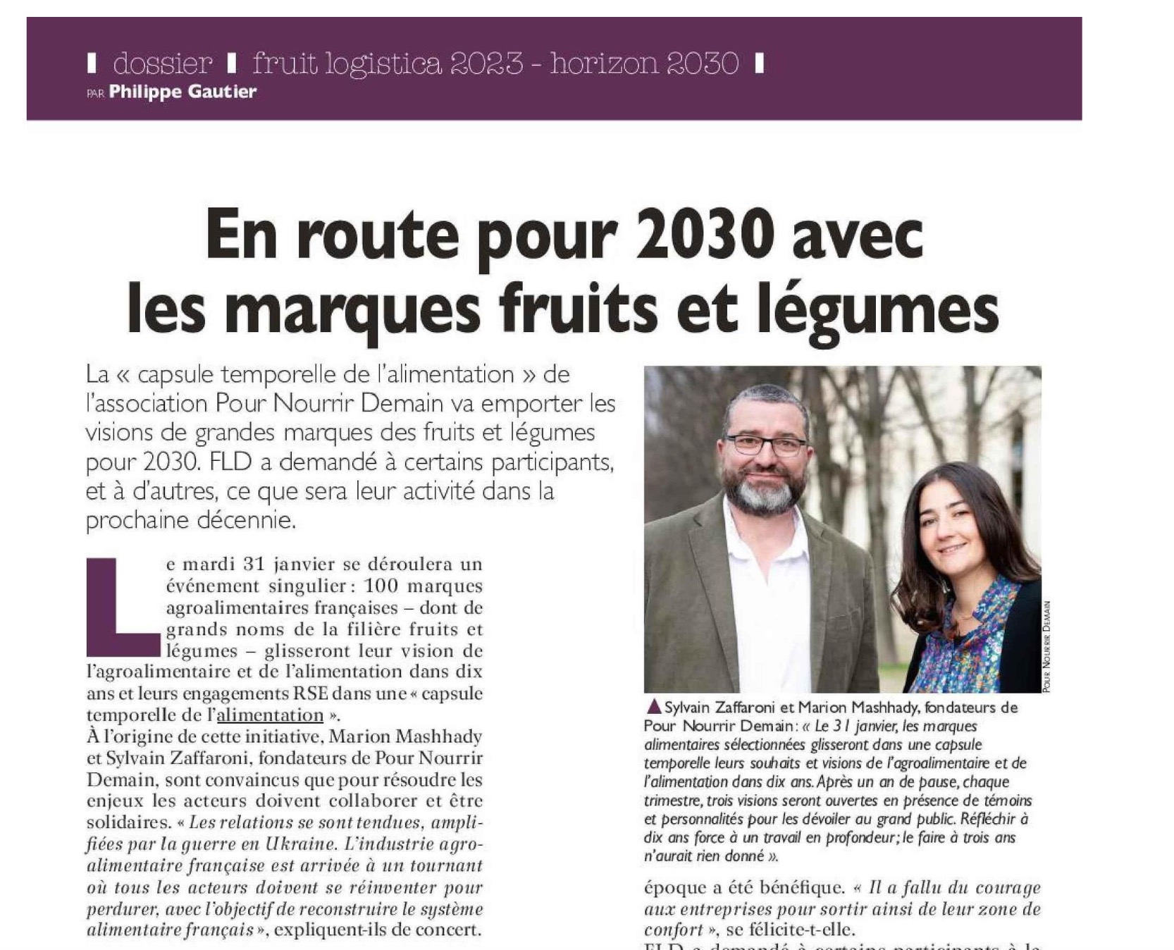Retrouvez l’article complet et la vision de leurs marques en 2030 par Pierre-Yves Jestin, président de Savéol, Franck Bonfils, président de Juste bio, Stéphane Lehoux, directeur général de St Mamet et Antoine Wassner, PDG de Sabarot dans le dernier magazine FLD.