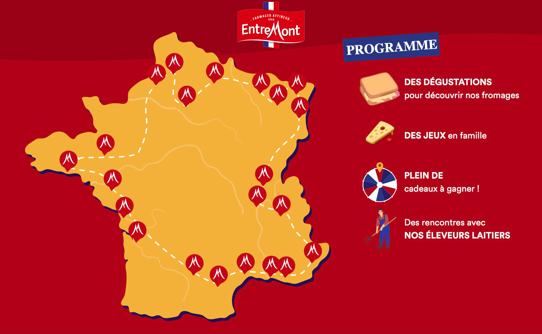 Entremont joue ici une carte pédagogique et transparente autour de ses fromages, en allant à la rencontre des consommateurs là où ils font leurs courses.