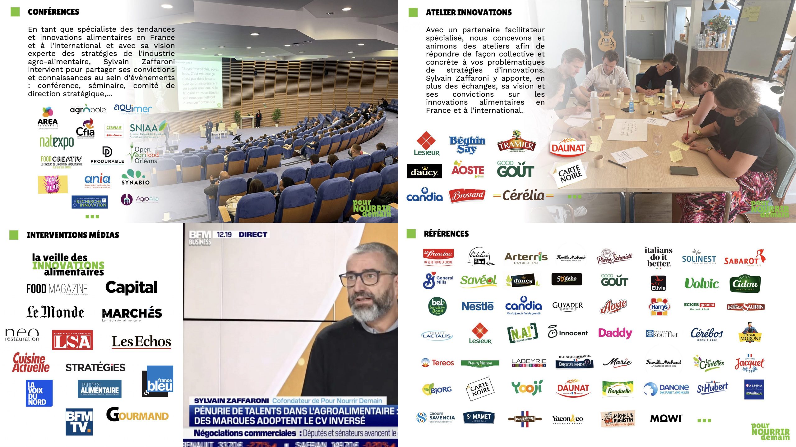 Sylvain Zaffaroni, cofondateur de Pour nourrir demain, spécialiste des tendances et innovations alimentaires et expert des stratégies de l’industrie agro-alimentaire, propose des interventions pour vous partager ses convictions au sein de vos évènements (séminaire, AG, conférence, comité de direction stratégique,…) ou de façon plus pragmatique dans vos stratégies opérationnelles.