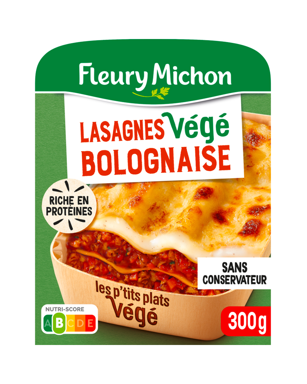 Les lasagnes végé bolognaise marient pâtes aux œufs frais, légumes mijotés et protéine de pois, gratinés à la béchamel et mozzarella.
