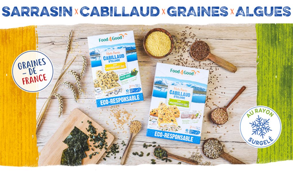 C’est l’association d’un vrai filet de cabillaud MSC pêche durable à une panure croustillante aux 5 graines bio.